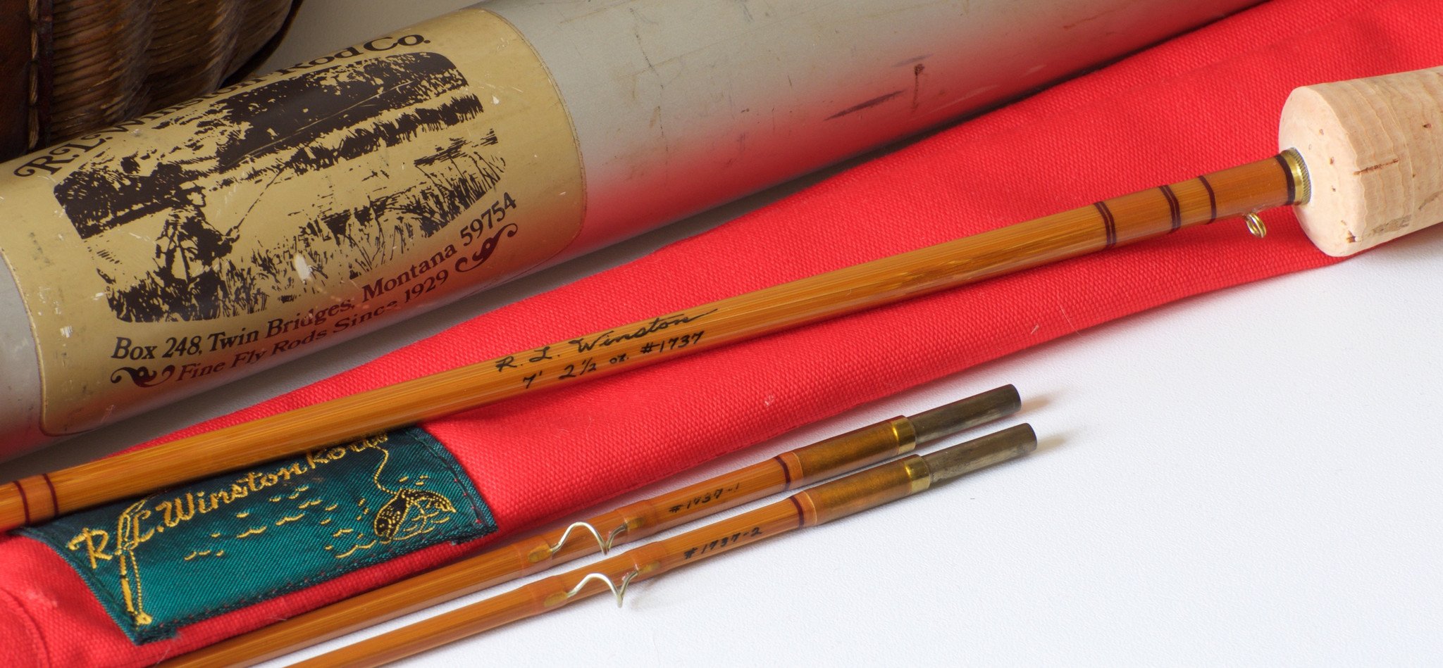 For sale here is a Morgan & Brackett-era Winston Rod Co. bamboo rod - 7 feet for a 4 weight line. Two-section construction. Serial #1737. 2 1/2 oz. The rod appears to be have the same characteristics and weight of the "Leetle Feller" 7 foot rod which originated in the San Francisco era. The ferrules are size 11/64 and tip tops are 5/64. Medium action. Excellent plus original condition. Skeleton cork reel seat with aluminum hood and locking ring. Carboloy stripping guide. Hard chrome, stainless snake guides and tops. All sections are full length, straight, and have no repairs (past or presently needed). There is some minor varnish roughness on a few inches of the butt section below the stripping guide (difficult to photograph). Comes with original Winston bag and Twin Bridges, Montana labeled tube. A stellar small stream rod. You will not be disappointed!
