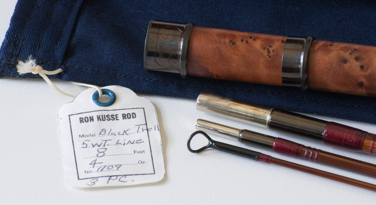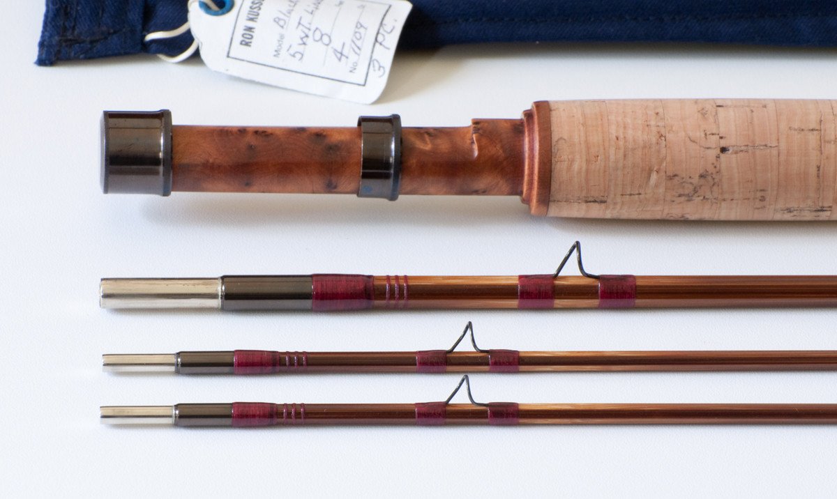For sale here is a Ron Kusse bamboo rod. The "Black Troll" model - 8 feet for a 5 weight line. Medium fast action. The rod weighs 4 oz. The rod is in excellent plus condition, showing very little use. Original bag, hang tag, and tube. All sections are full-length and straight.