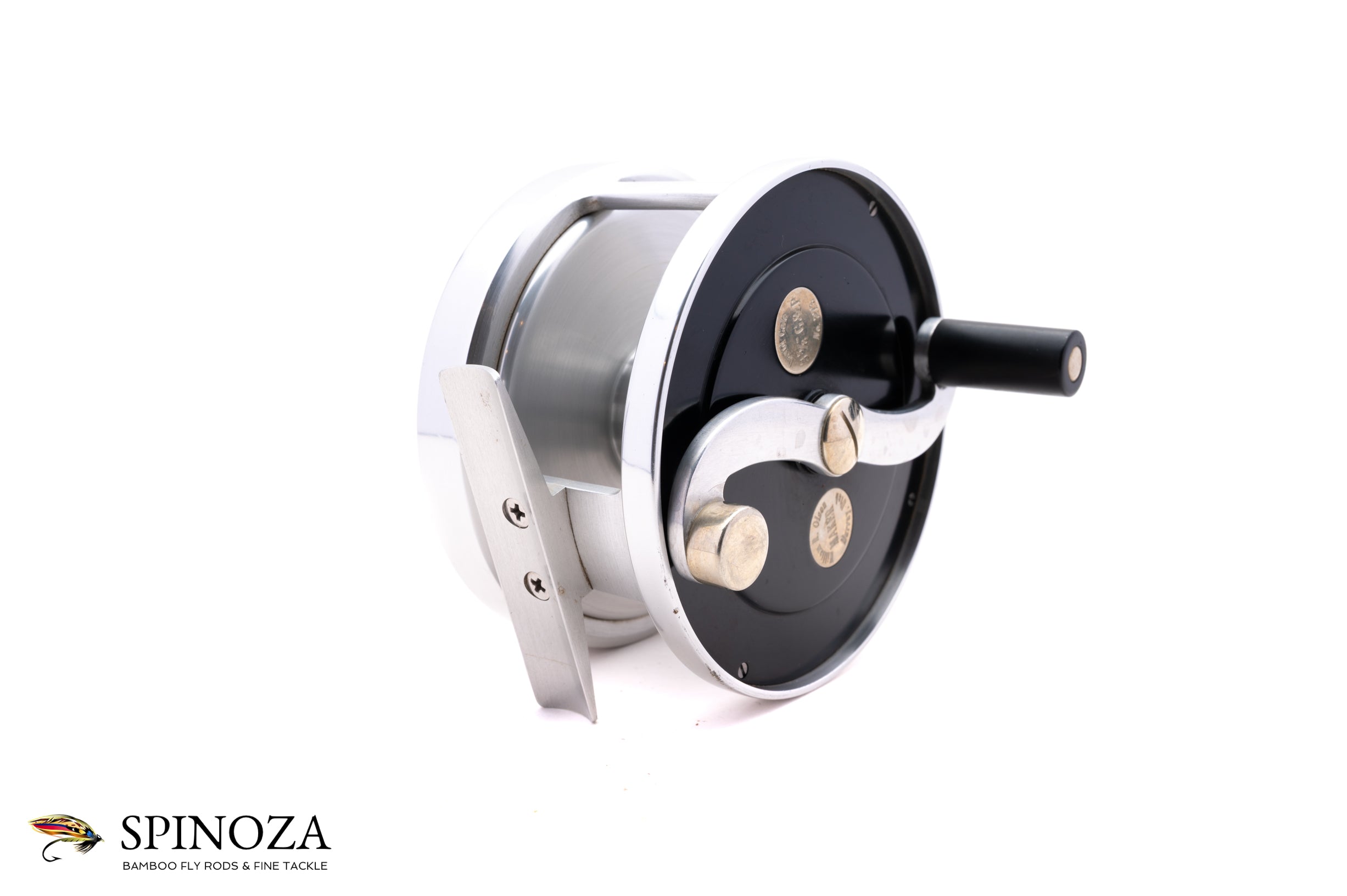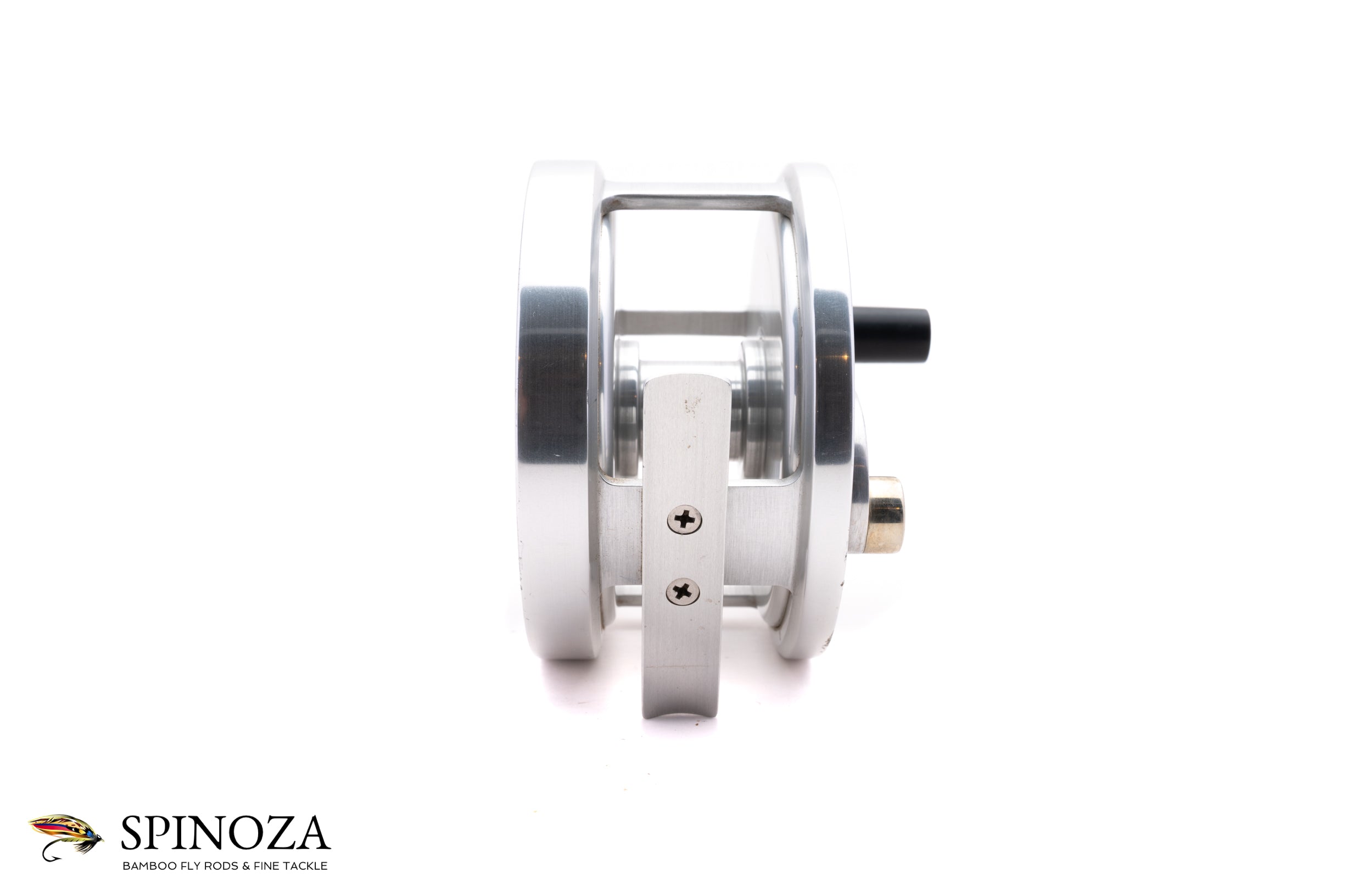 A very nice William Olson Gear and Pawl fly reel, 3 5/8"" diameter and set up for RHW. Black anodized throughout with a clear anodized foot and S-shaped crank handle. Two handsome medallions are inset into the front plate with the first noting the original owner's name, model (3 5/8" G&P), and serial number (No. 273) while the second bears William's maker stamp. The reel weighs 10.6 ounces on my scale. It is in lightly used condition with some rim rash in the "resting spot" and two small nicks elsewhere on the frame edge. Very clean otherwise. Ebonite-style handle. Pre-set gear and pawl drag which has one of the loudest clicks of any gear and pawl reel I've ever seen (your friends will know when you are into a fish on this reel!). No bag. Mr. Olson has built a well-deserved reputation as one of our best contemporary bench reelmakers, and, as fans know, the waitlist is substantial. Here is your chance to skip it and enjoy this reel on your next salmon or steelhead trip.