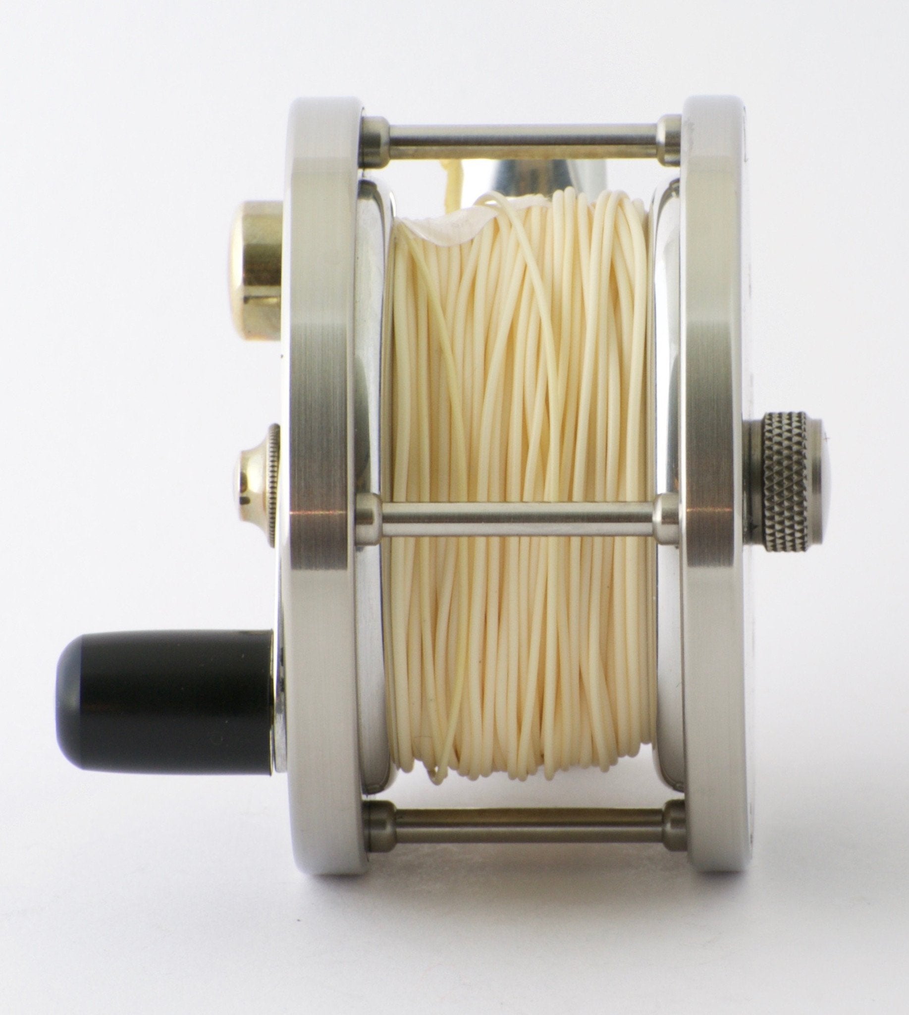 For sale here is a stunning 2 3/4" Saracione Deluxe fly reel in near mint ++ condition. No marks on the sideplates or rims, just extremely minor marks on the reel foot from being attached to a rod. Right hand retrieve. Serial #228. Stainless steel rings and delrin sideplates. Comes with an Arne Mason leather reel case. Spool width: 7/8”. Weight: 5.95 oz. with the Wulff TT 3/4 fly line and backing included. Capacity: 60yds 20# micron WF4F. Application: Designed for 7-7 1/2ft bamboo rods in the 4-5wt class. As Joe states, "This is by far our most popular trout model."