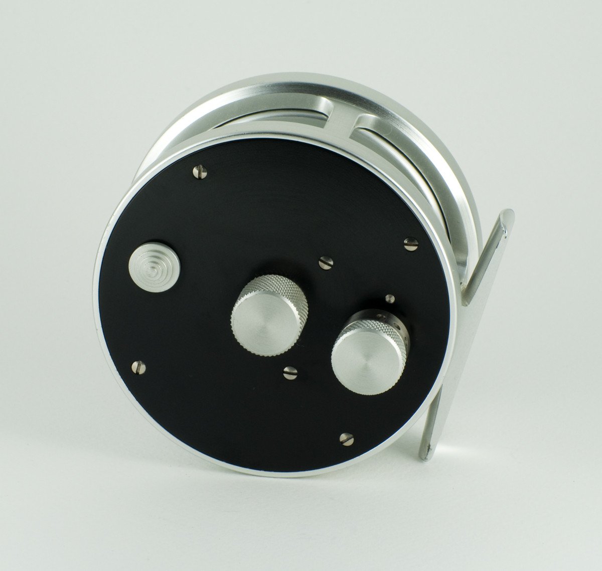 For sale here is a early and rarely seen Saracione SCA (Saracione Classic American) -- 3 1/4" diameter bench-made reel. Near mint condition. Right or left hand retrieve. Gorgeous S-handle, black anodized aluminum sideplates, unique removable spool system and full-range drag adjustment knob. These reels were made from 1985-1988 and are almost impossible to find in this condition. Spool width is ~ 0.85". Reel foot is 2.4". Weight is 7 3/4 oz. Designed for a 5 or 6 weight line plus plenty of backing. The only marks on the reel are on the reel foot from being mounted on a rod and a tiny nick or two on the frame edges that I cannot even get to appear in a photo because they are so small. The reel also comes with a Saracione-supplied reel case and the specs of the reel which is something I've never seen before with these reels. A nice bonus!
