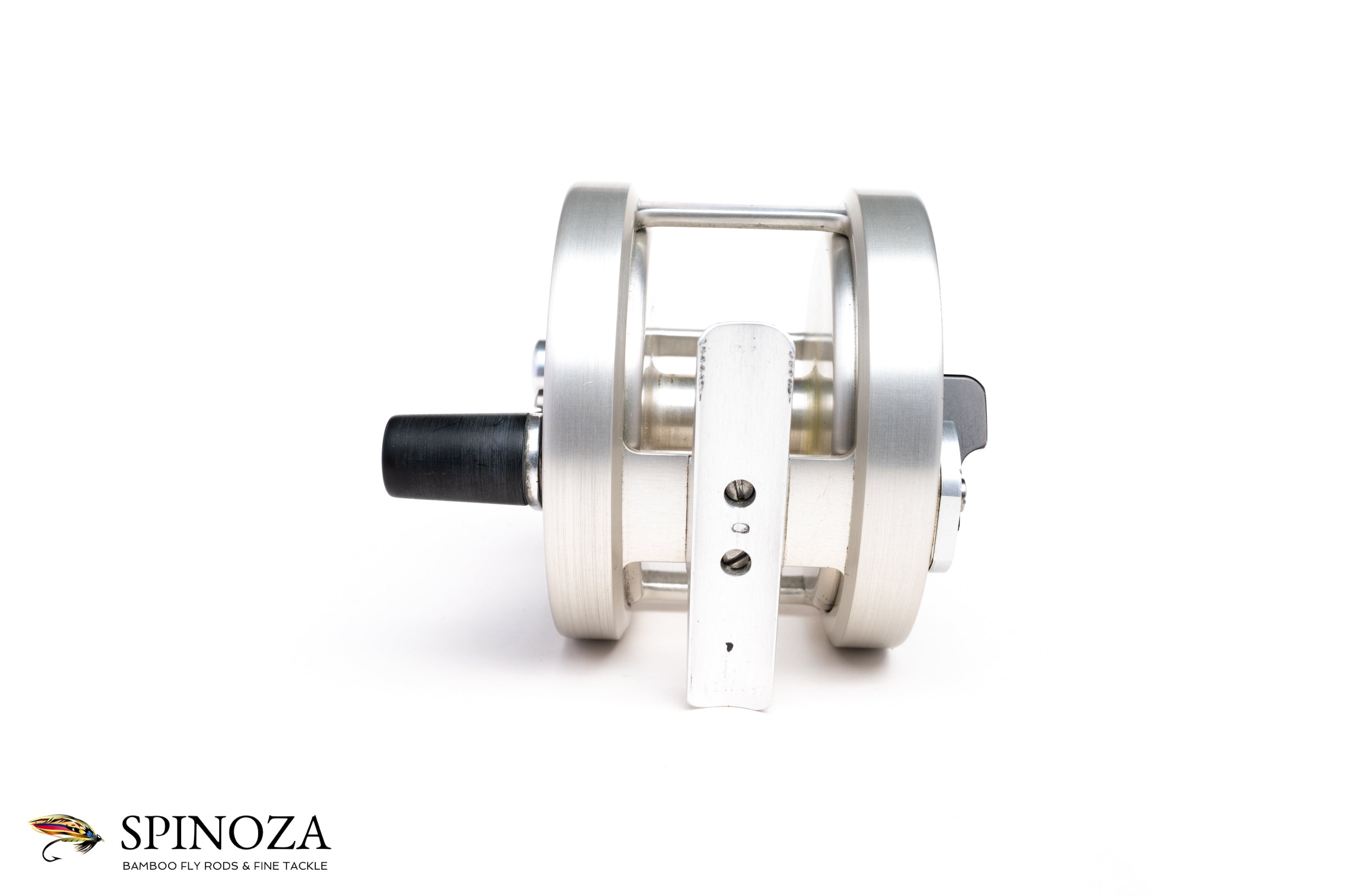 A Bogdan model 0 salmon reel, set up for LHW. 3 1/4" diameter with a 1 3/8" spool width. Capacity for holding a #9 line with 150 yards of backing. This was the singlehanded workhorse model in the Bogdan catalog. Good used condition with some minor rim rash on the frame edge and a few small nicks. The interior of the spool has some minor surface corrosion but the reel is clean otherwise. Silver anodized frame, foot, serpentine handle, oil port cover, poacher's knob, and Bogdan nameplate. Black sideplates. "No 0" is stamped into the underside of the foot. Double action 2:1 retrieve and the famous Bogdan double brake design. No bag. A hard to find LHW version of this reel with lots of salmon fishing ahead of it.