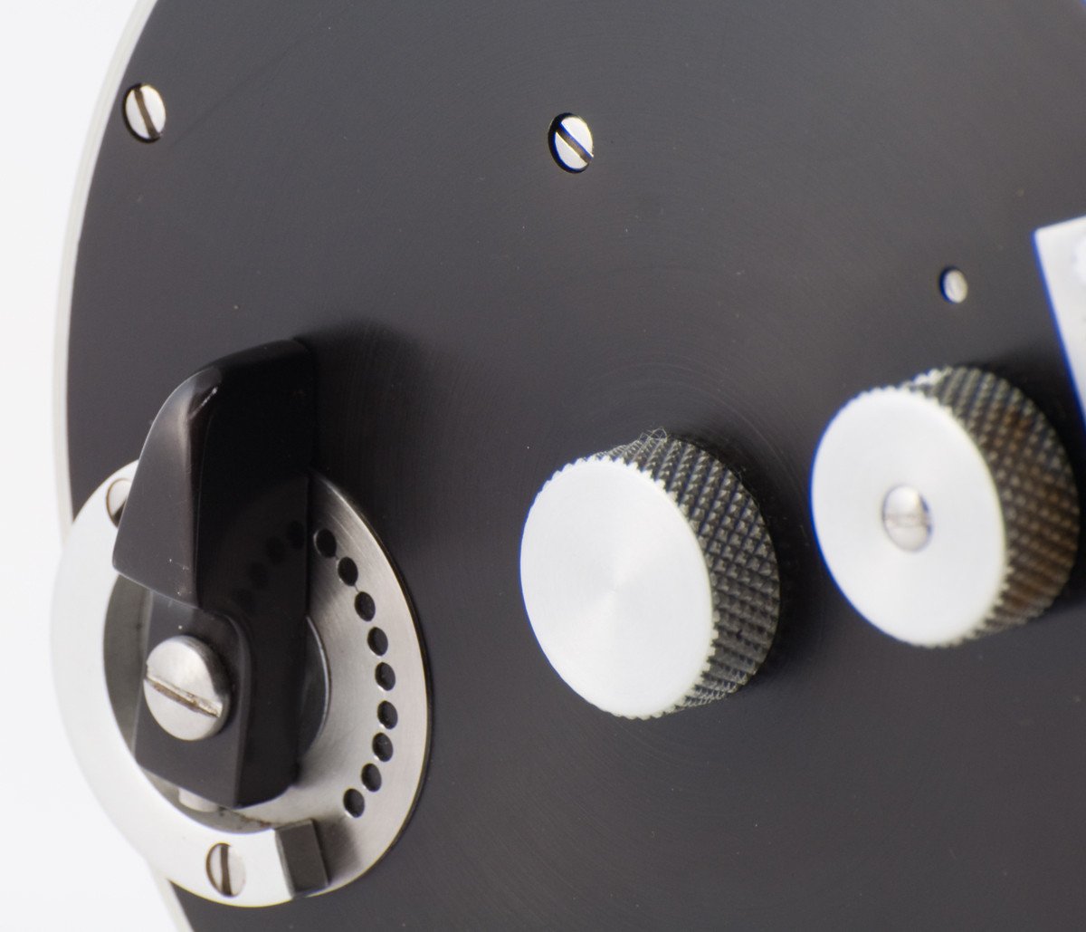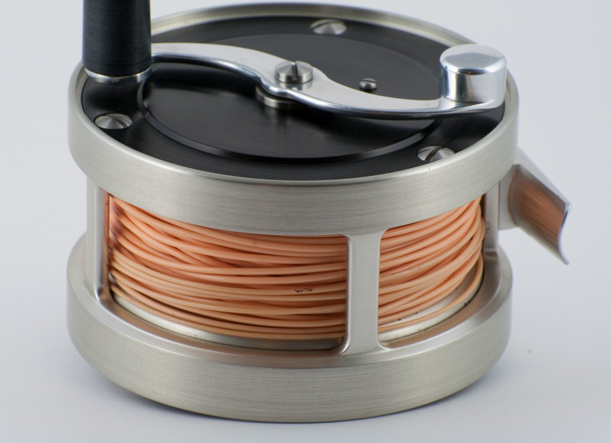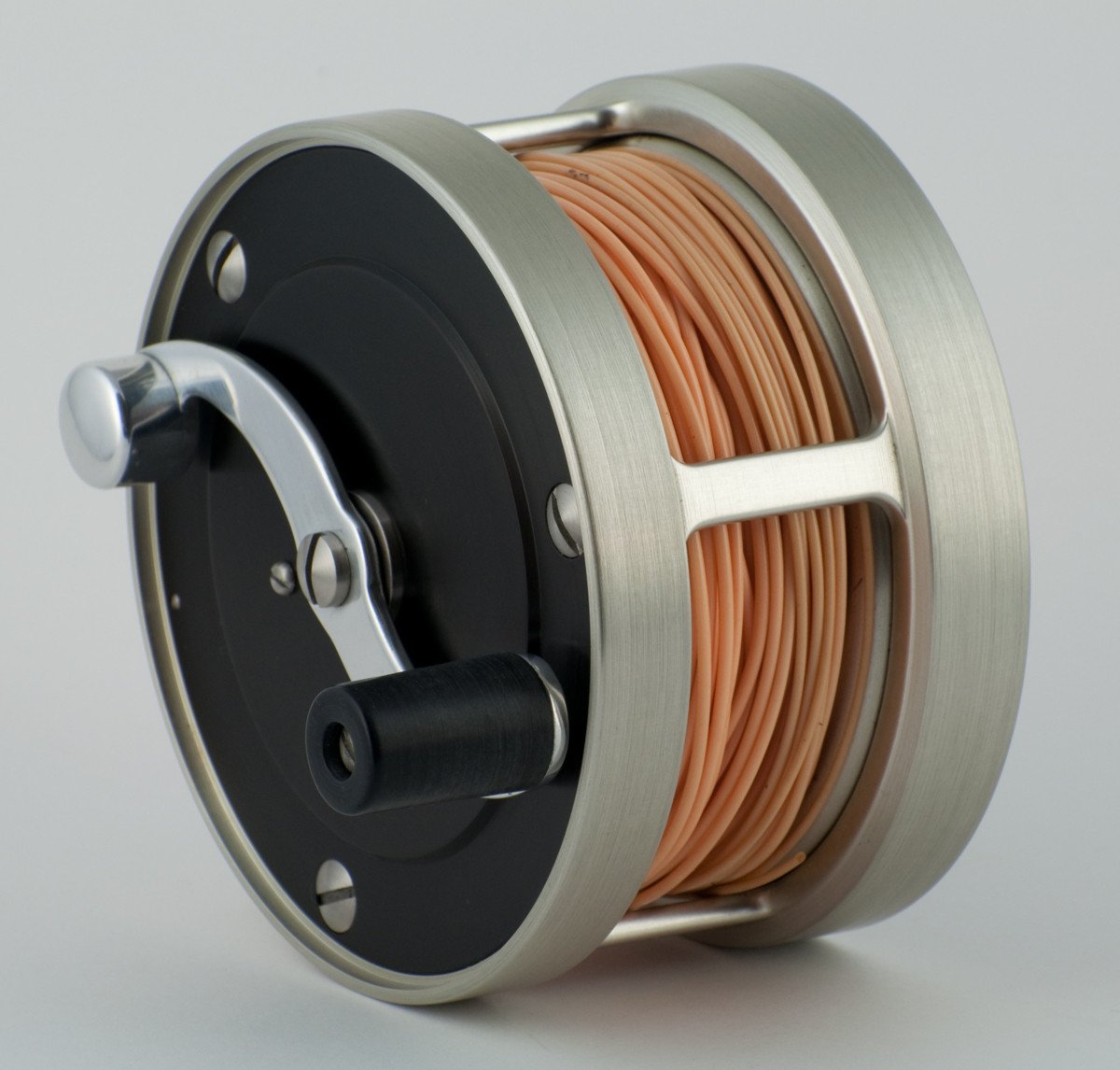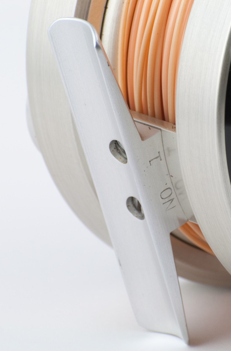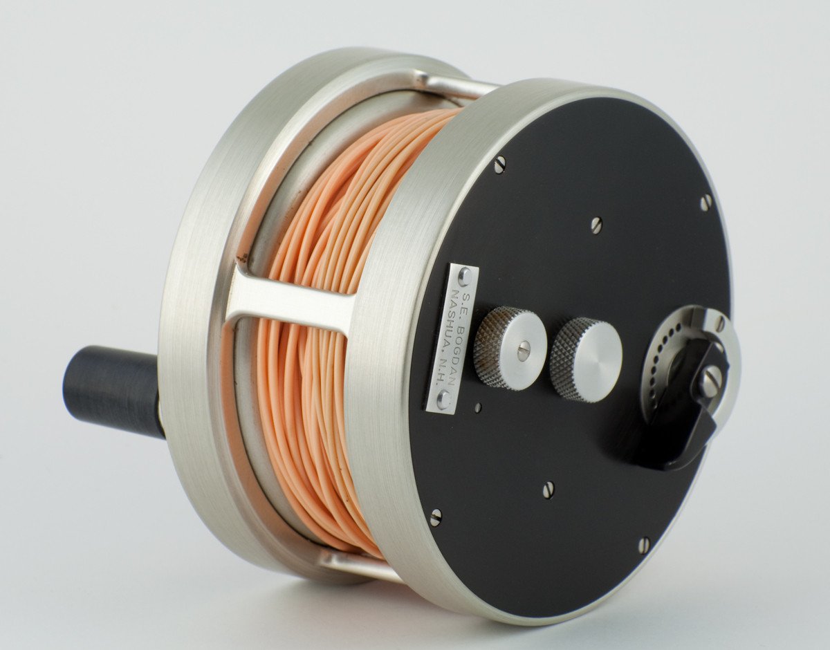 For sale here is a rarely seen Bogdan Model 1 LG Salmon fly reel in right-hand wind. Original suede case. Reel has been mounted on a rod and probably fished once or twice. I still consider the reel to be in near mint condition. There's a mark to the underside of the reel foot and a very tiny scratch or two on the drag adjustment knob, and some very faint handling marks in the anodized back plate (hard to capture on camera). Mechanically the drag is still perfect. Line and backing comes with the sale.