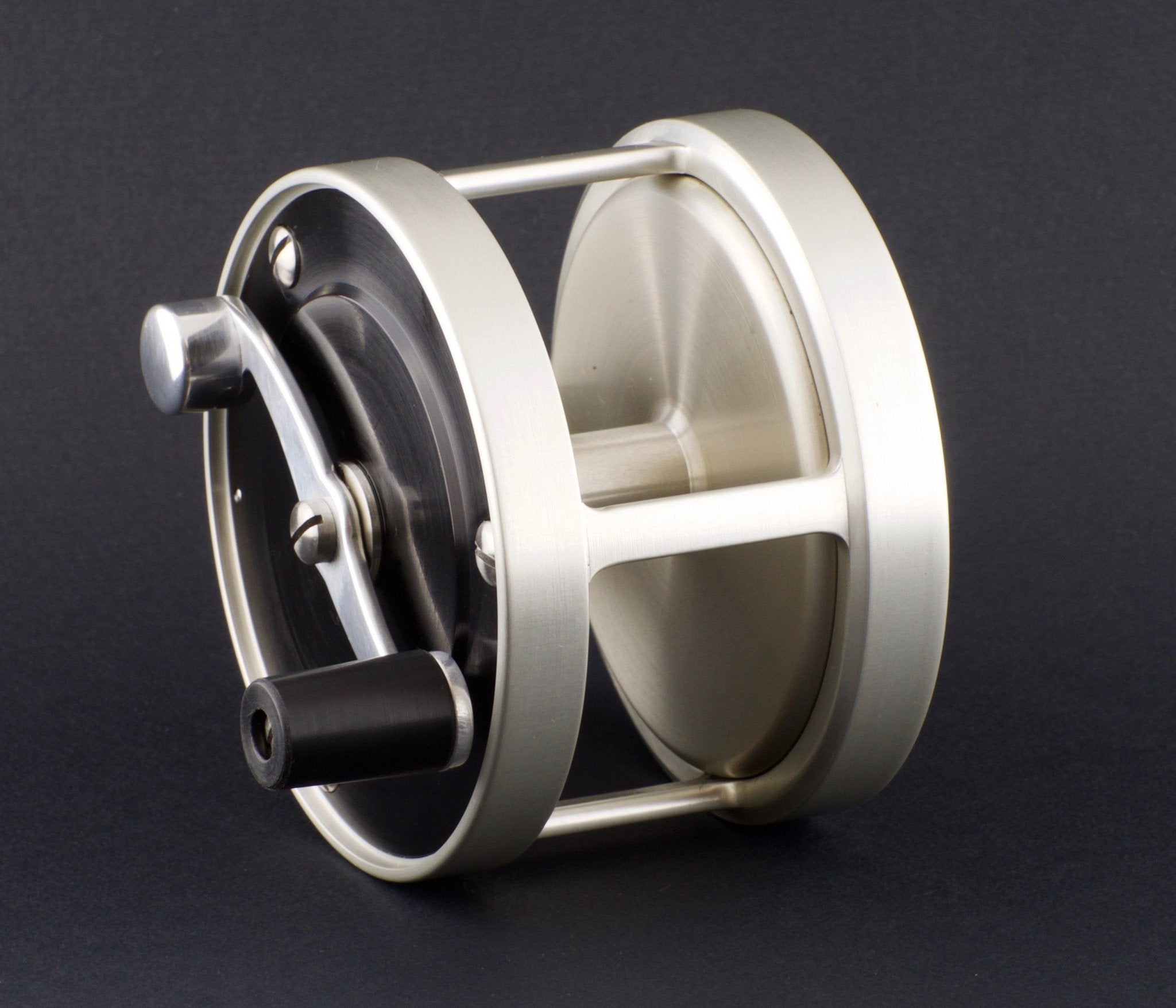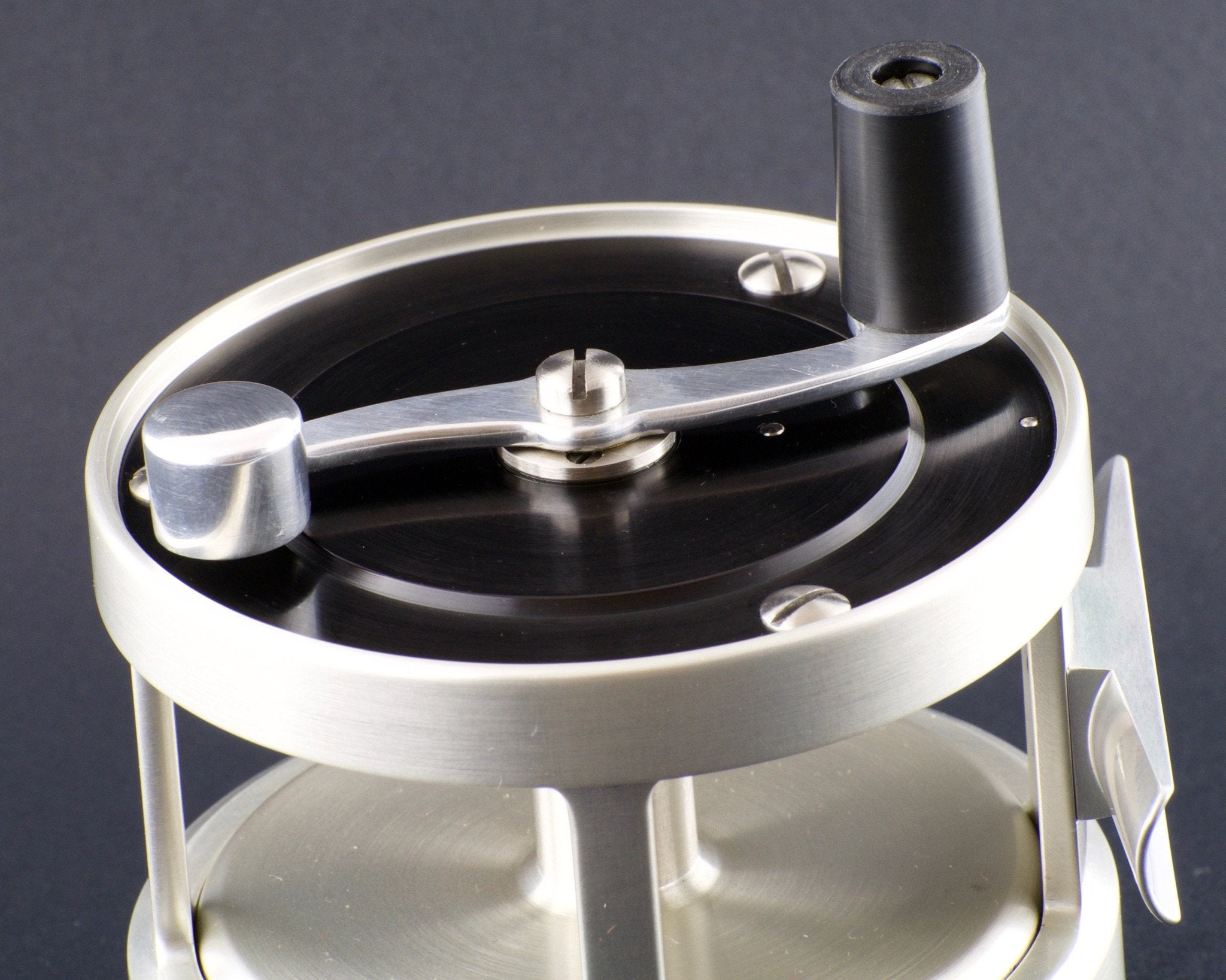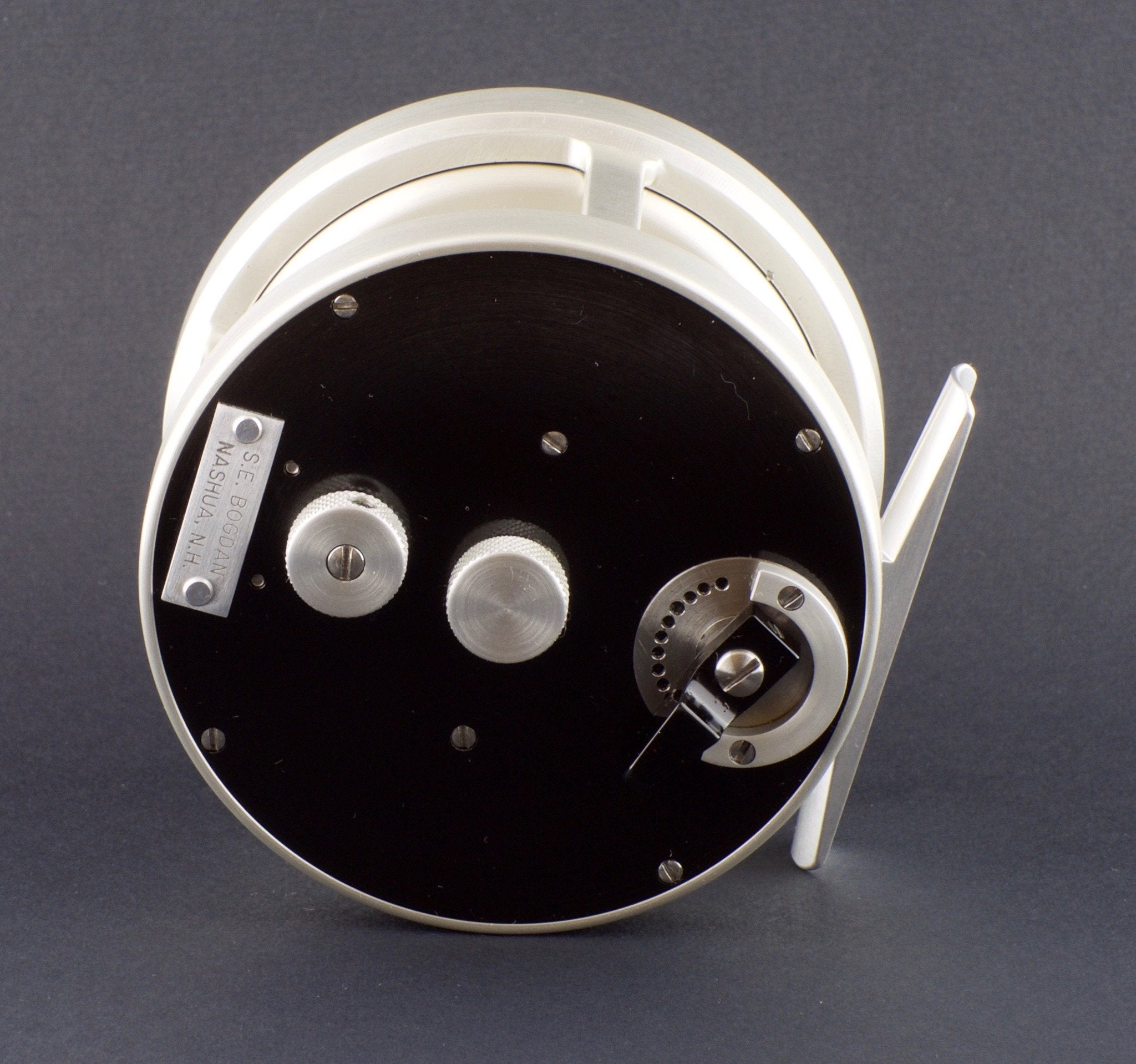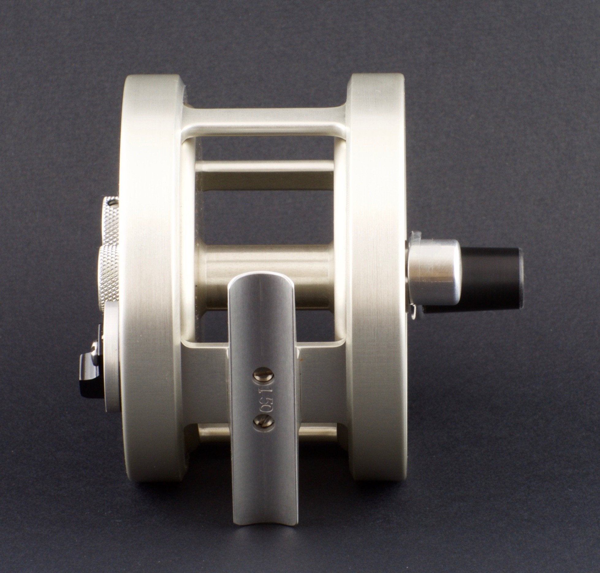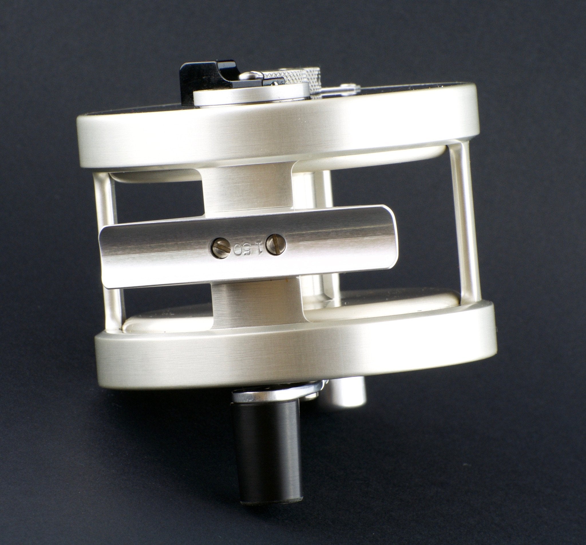 For sale here is a Bogdan Model 150 fly reel in right-hand retrieve. The reel is unused. No marks on the reel foot. Three tiny marks in the anodizing on the front plate around the handle arm screw. Very inconsequential and most likely came direct from Stan like this.