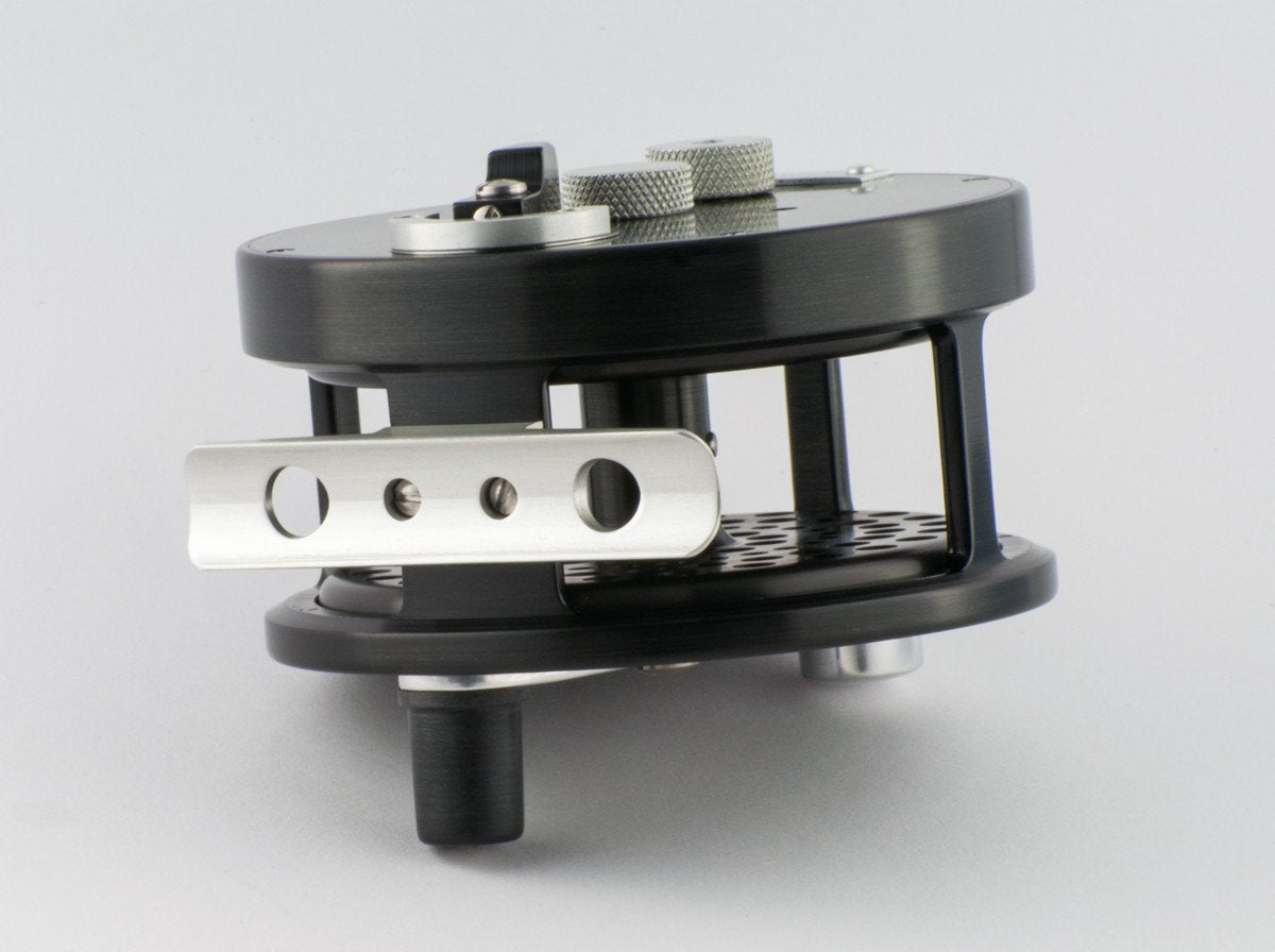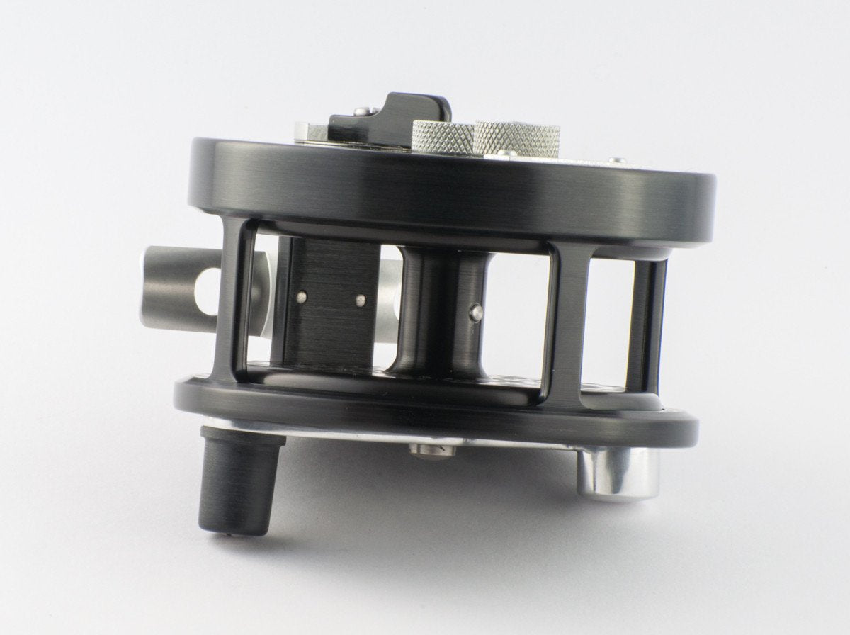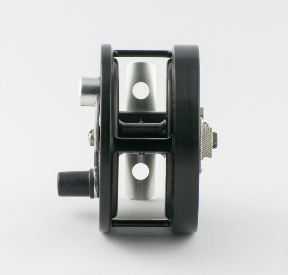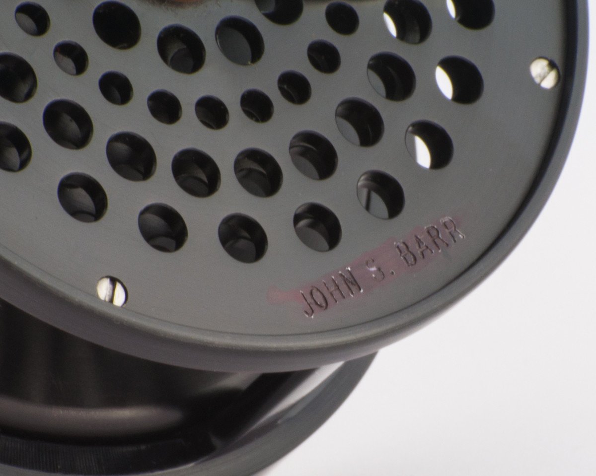 For sale here is a near mint condition Bogdan Model 50 light salmon fly reel in left-hand wind. This is the rare all-black model. Original suede case. The reel includes the inscribed name of the original owner and legendary fly tier, John S. Barr. As you can see in the photos, the prior owner covered over the name with a black magic marker.