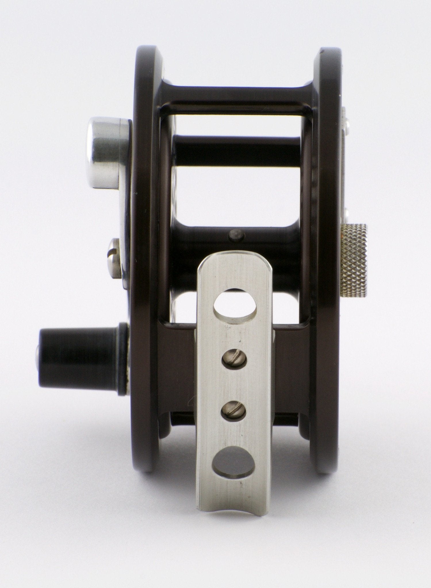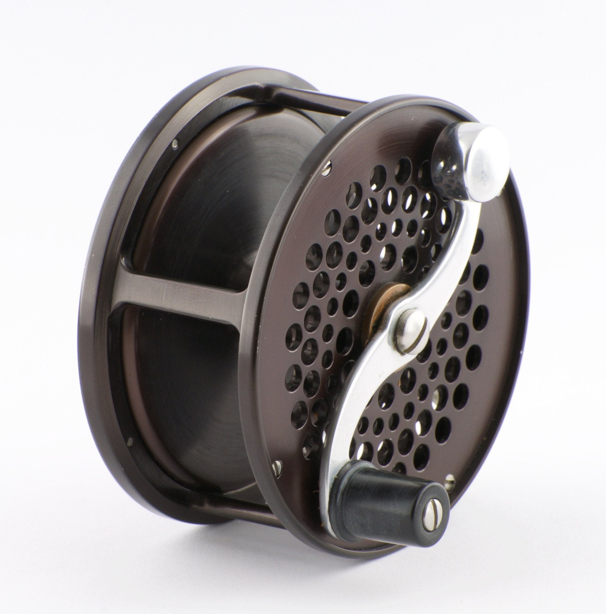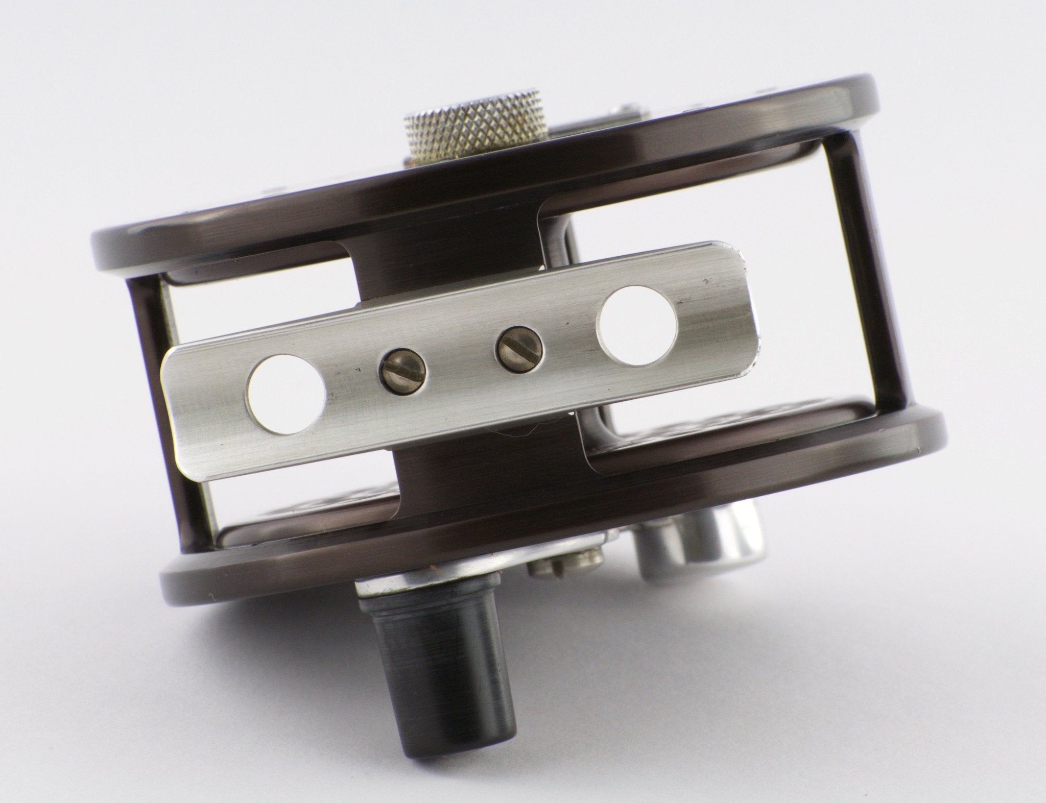 For sale here is a Bogdan Steelhead model fly reel in the difficult to find all-black version. Excellent used condition with a few marks from fishing. Set up for left hand retrieve but can be changed to right for a small fee. This is one of the coveted "plum color" anodized reels. 3 1/4" diameter. Comes with original suede case. Don't miss out on this rare black beauty!