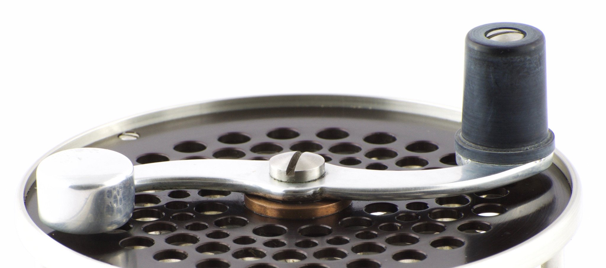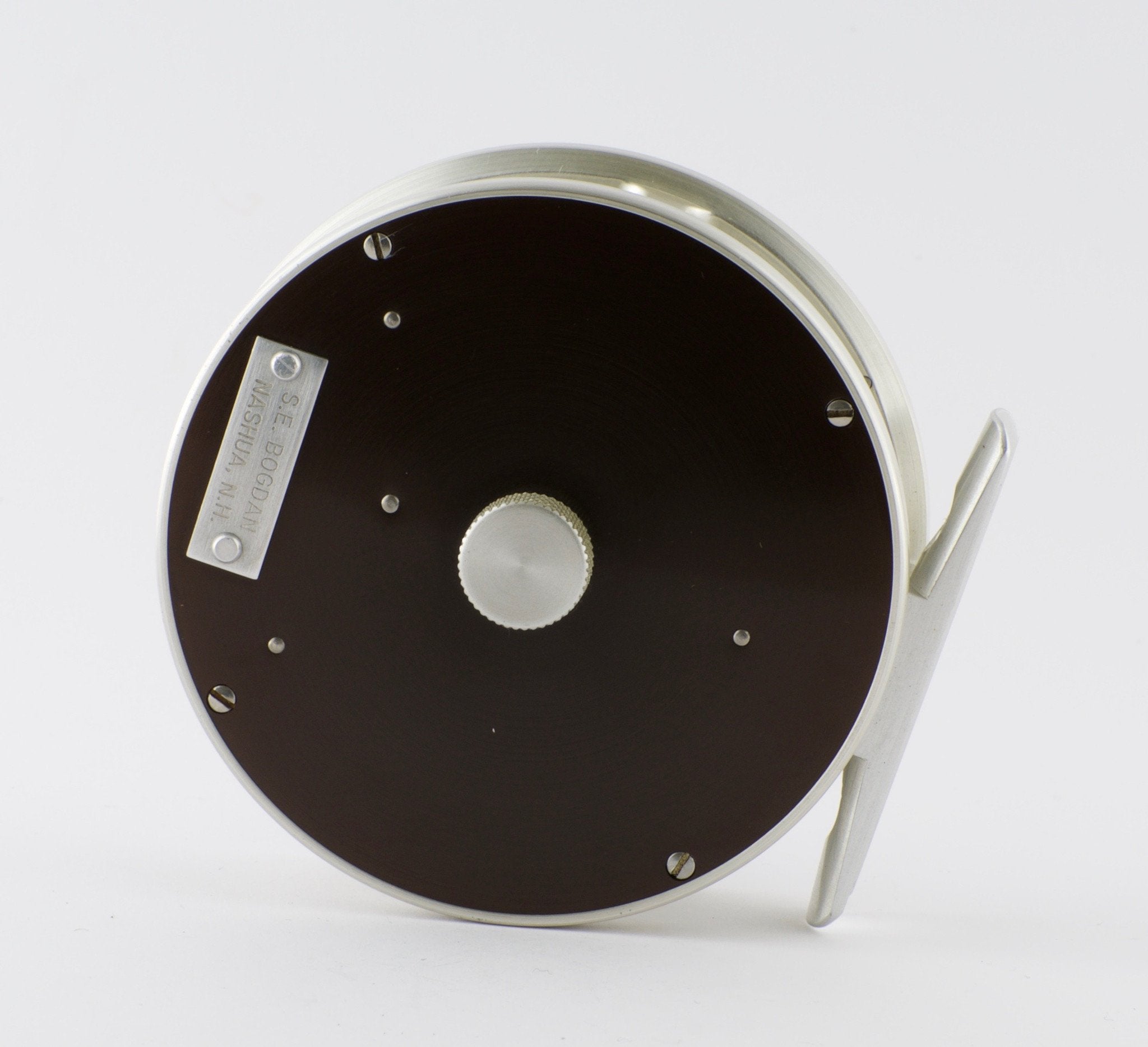 For sale here is a Bogdan Trout model fly reel in near mint + condition. There is one pin-size mark to the backplate. No wear to the rims or foot. Capacity is WF5+20yd. Weighs 5 oz. Set up for right-hand retrieve but can be easily switched to left for a small fee. The reel comes in its original suede case.
