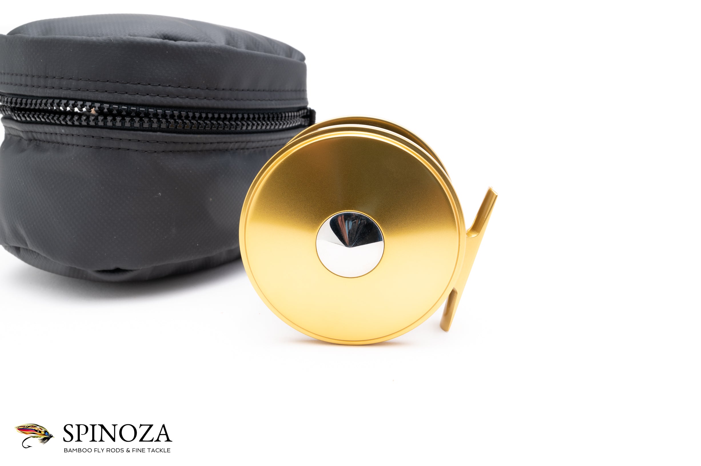 A very nice Seamaster Dual Mode Mark II fly reel, set up for RHW. 3 1/4" diameter with a 1 3/8" spool width. Weighs 10.5 ounces on my scale. Mint, unfished condition. The reel boasts the famed Seamaster dual mode design and holds 300 yards of backing and a WF10 line. The classic black and gold Seamaster color combination. The reel packs into the original zipper pouch and comes with the original paperwork as well.