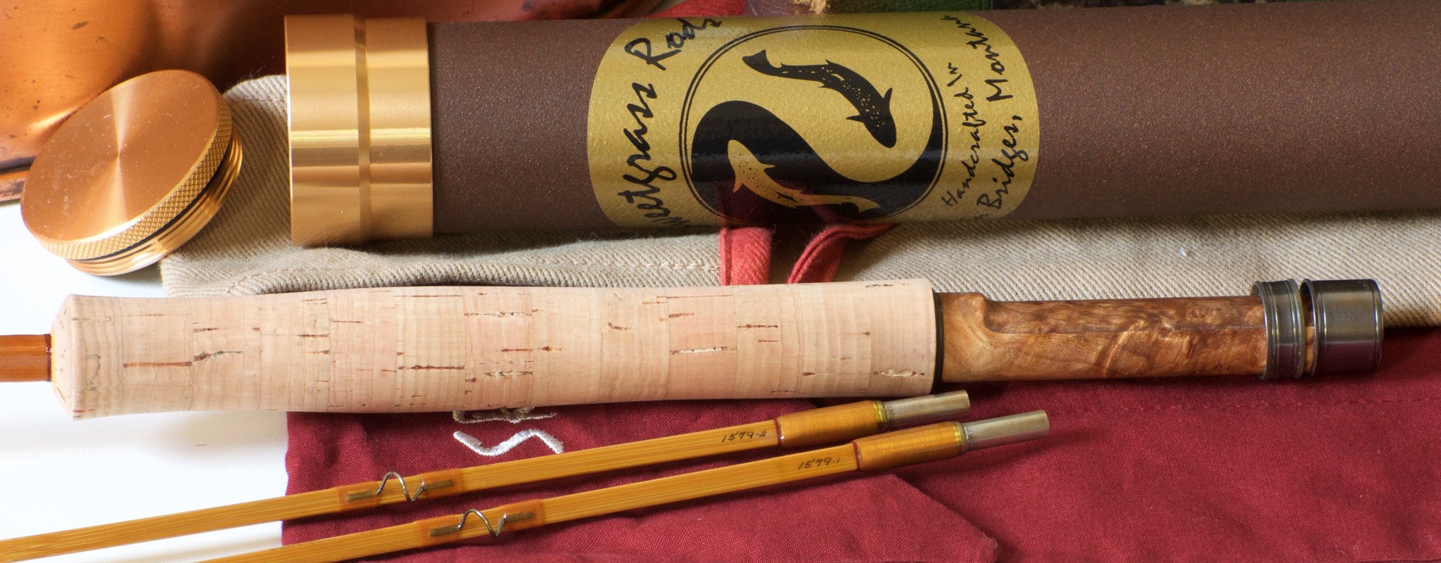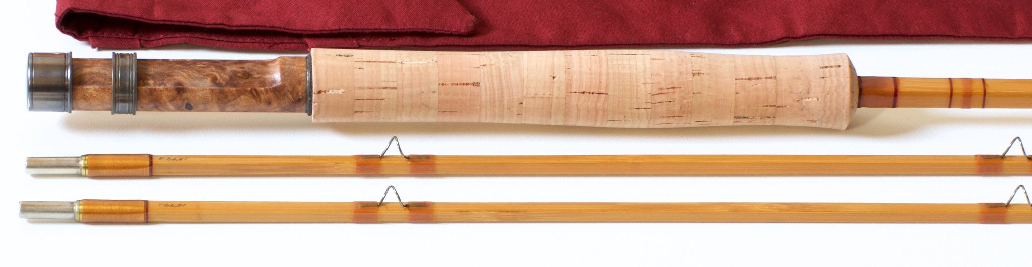 For sale here is a Sweetgrass quad bamboo rod - 8 feet, 2 piece rod with two tips for a 5 weight line. 3 7/8 oz. Excellent ++ condition with original bag and tube and protective canvas rod bag. Medium fast dry fly action. The original owner's name appears on one flat.