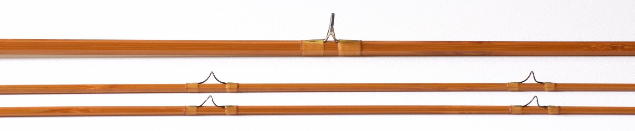 For sale here is an impregnated Thomas & Thomas Montana 8' 2/2 6wt from the Individualist Series, T&T's highest grade of rods. This one is in excellent++ condition. Translucent honey wraps tipped in a reddish brown and chocolate brown and the ferrules. Slightly tapered reverse half wells / cigar shaped cork with elegantly swelled butt. Uplocking nickel silver reel seat over walnut. Darkly-oxidized nickel silver ferrules, snake guides and tip tops.The T&T wraps, in this certain period of production, had an issue with "frosting" underneath the wraps. A few of the guide wraps exhibit this phenomenon. This is a purely cosmetic issue per Troy at T&T and has not affected the integrity of the wraps. The asking price reflects this. Serial number 3626. This rod weighs 5 1/4 oz. Size 13/64 ferrules with an excellent fit. On the fast side of medium-fast action. Original bag with wooden stiffener and brass-capped aluminum tube.