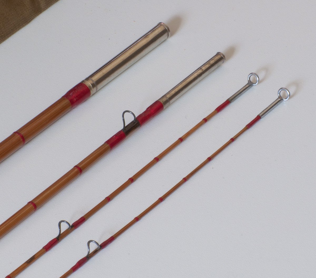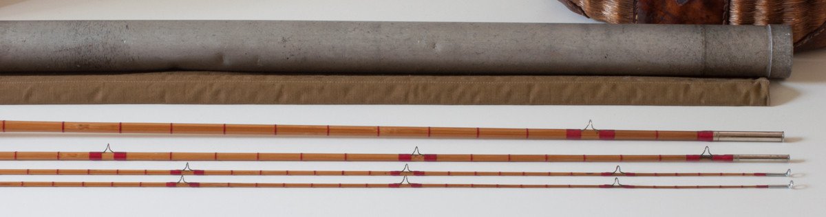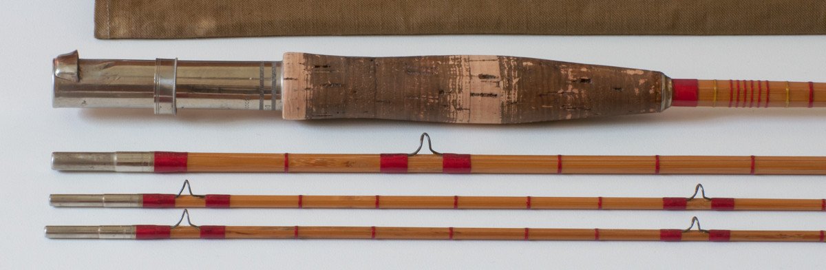 For sale here is a scarce Denver Special 8642 rod made by Goodwin Granger. 8 1/2 feet, three sections with two tips. The rod is in excellent restored condition. Michael Sinclair performed the restoration due to prior varnish meltdown. The original script was retained (nice, Michael!) All sections remain full length and relatively straight. Comes with original bag and tube. The ferrule fit is good on all sections. The two tips have different taper profiles, especially near the ends of the tips, one being smaller in diameter. There is no evidence of any repairs having been carried out. Don't miss out on this scarce model!