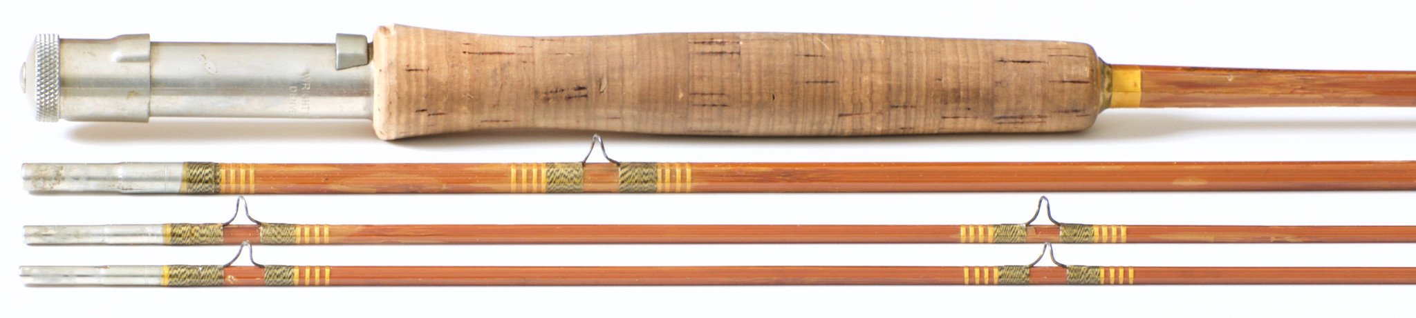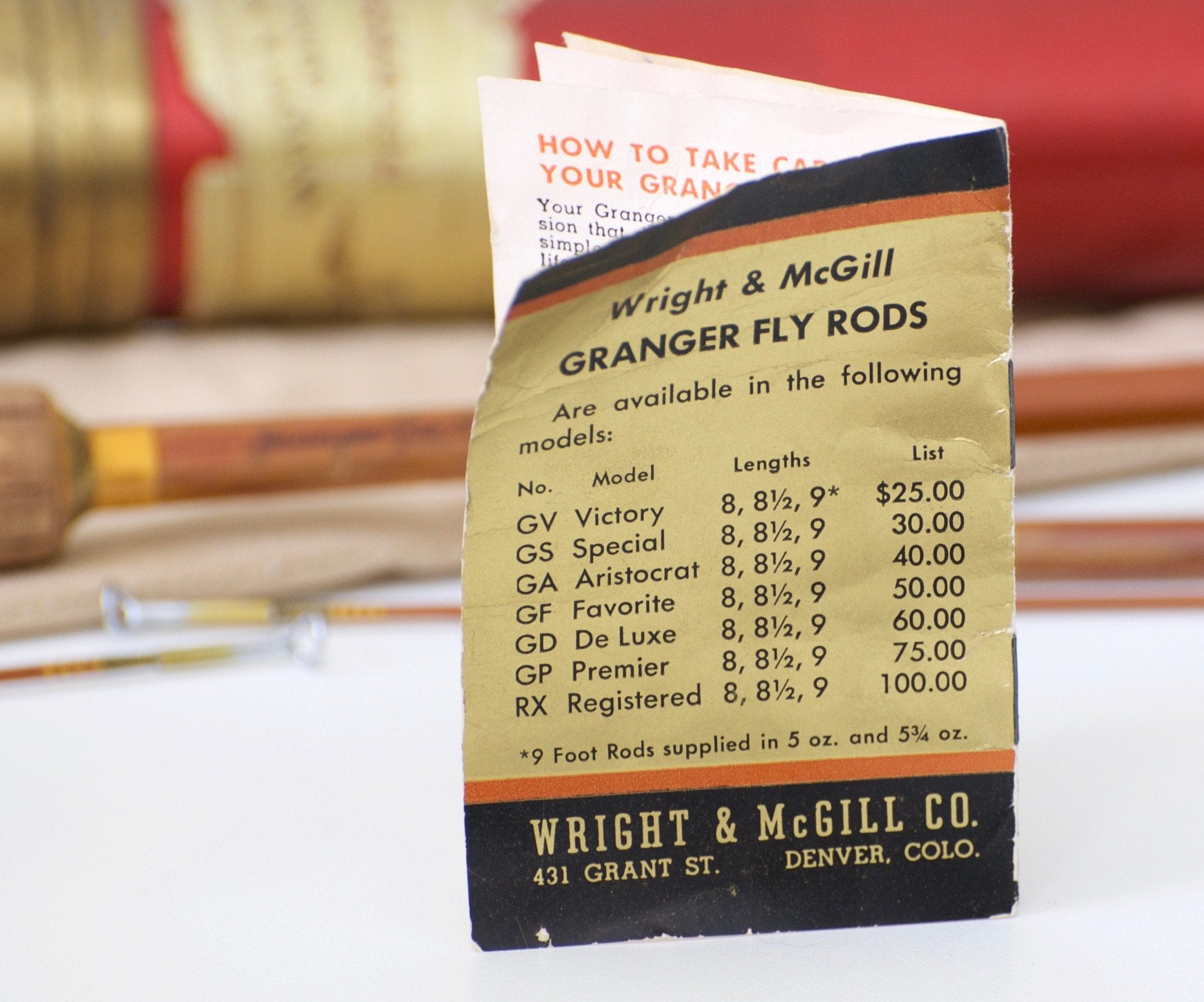 For sale here is a Wright & McGill Granger Deluxe Model 8642 - 8'6 3/2 for a 5 weight line. The rod is in original condition but could use a full restoration due to the poor condition of the varnish. The ferrules are size 17/64 and 11/64. Comes with original bag and labeled tube.