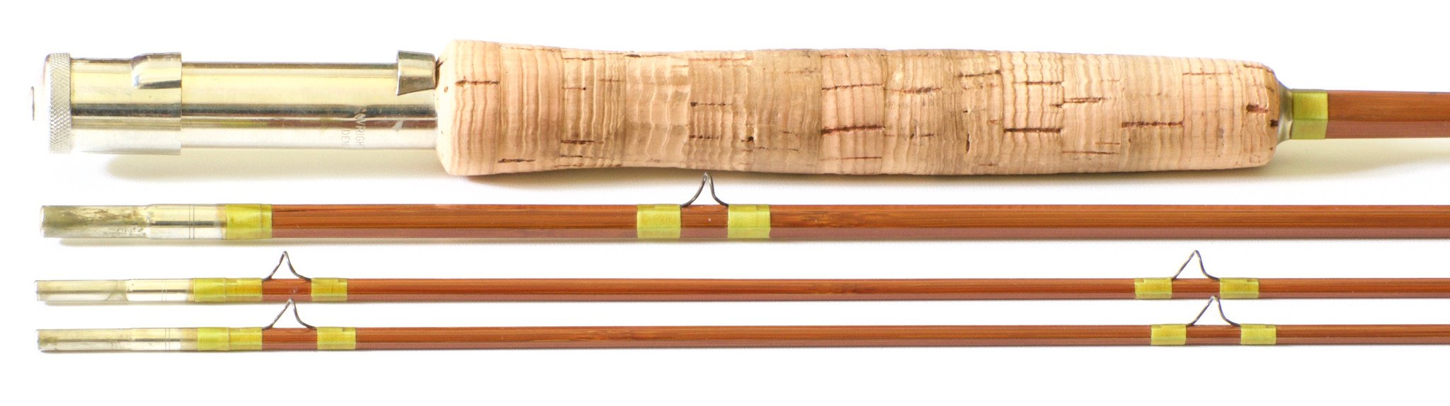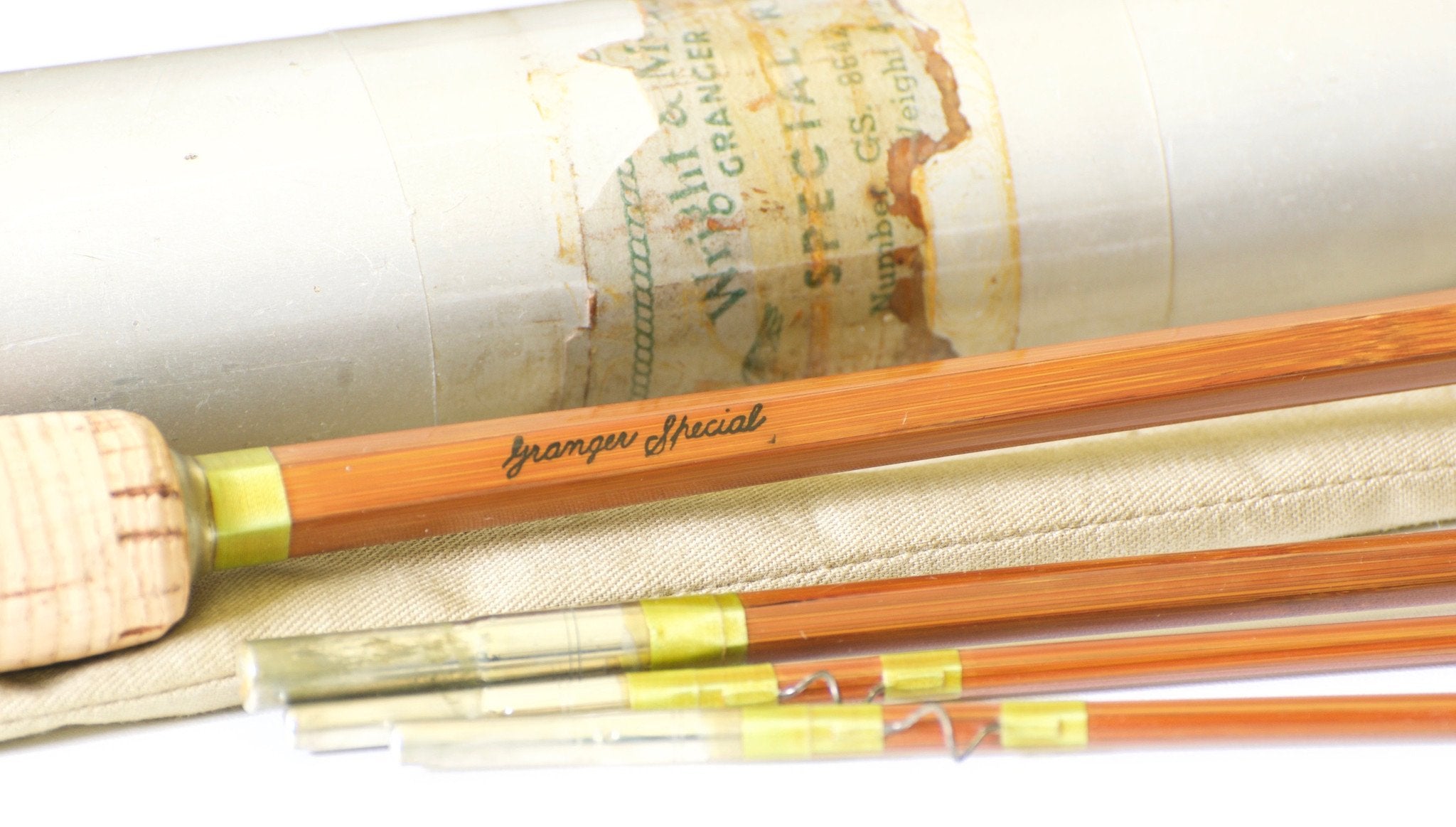 For sale here is a Wright & McGill / Granger Special Model 8642 - 8'6 3/2 for a 5 weight line. The rod is in excellent plus condition. All sections are full length and straight. Classic "Granger green" silks with the signature wrap in the middle of the butt section. Western style grip is in excellent condition with only light soiling and minor ridging. Granger/W&M nickel silver patented up-locking reel seat performs flawlessly. Ferrule fit is excellent. The rod has a versatile medium-fast action. Ferrule size 17/64 and 11/64. Rod weighs 5.20 oz. Original bag and original tube with 80% of the label. This is a great all around trout rod from a classic Colorado maker ready to hit the water.