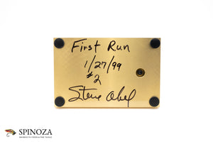 A very nice Abel Supreme fly tying vise, this one from the first run that Steve Abel made in 1999 and signed by him along with "#2" on the underside of the base, presumably to indicate the second of these that Abel made. The vise does not appear to have been used at all from what I can see. The base is machined from solid brass, as are the stem and headstock. The result is a precision and heavy duty package that is reminiscent of the heavier Renzetti designs.