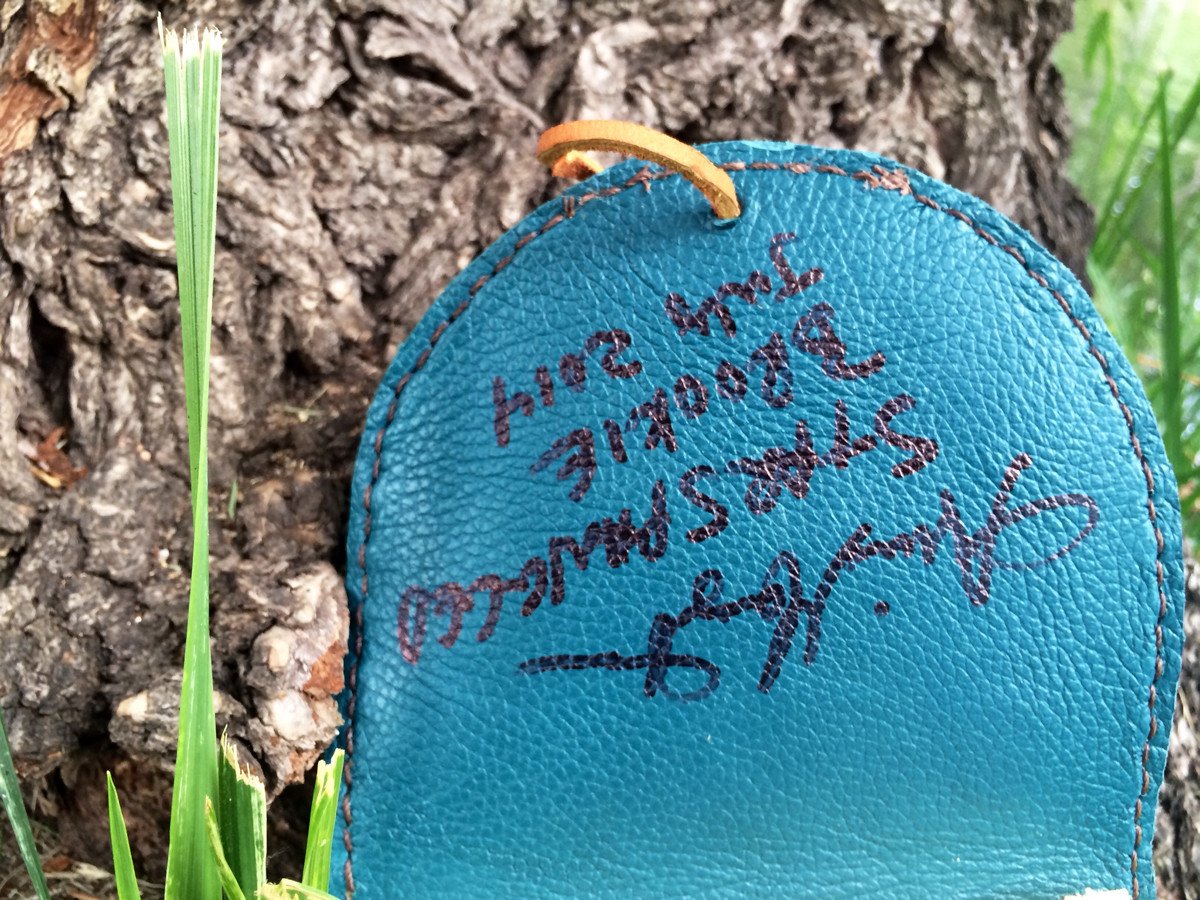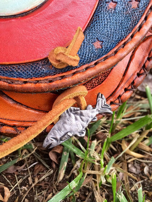 For sale here is an exquisitely-crafted leather reel case by Annie Margarita - the "Star Spangled Brookie". This reel case was made to fit reels from 3" to 3 3/4" (a Hardy St. George for example) in diameter and is padded with thick shearling for protection on all sides.