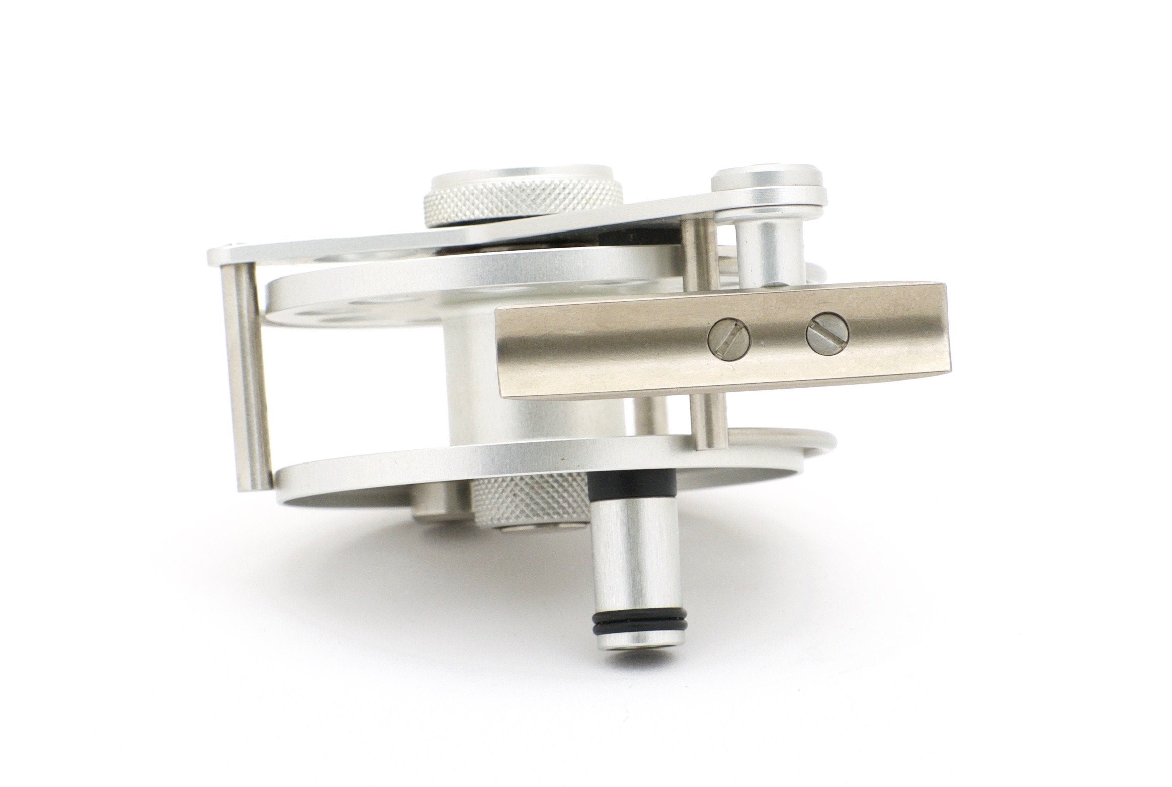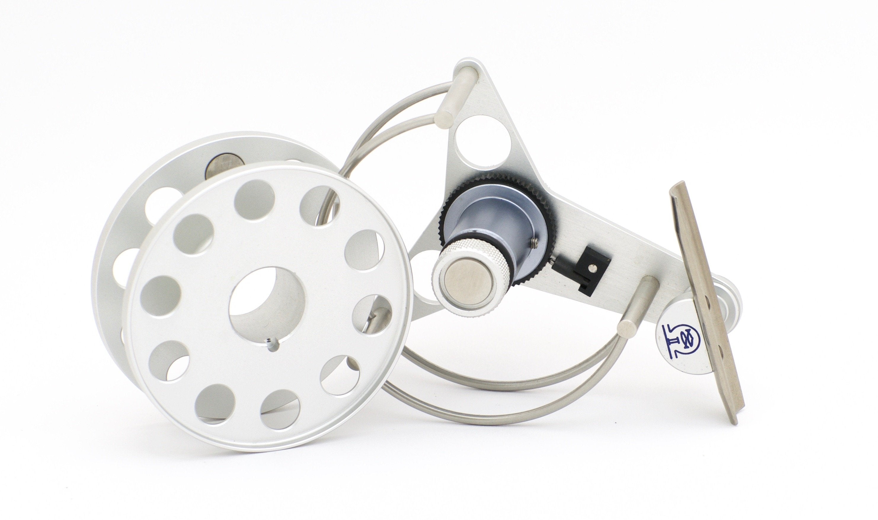 For sale here is an Ari 't Hart Ari II trout fly reel and spare spool in mint condition. All-silver version with blue accents. Made in Holland. The reel is set up for left hand retrieve. Comes with original cases. Spool diameter 2.83". Weight 5.75 oz. Capacity up to a WF7+109 yds.