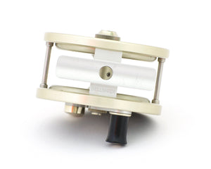 For sale here is a Bellinger 3" Mark I fly reel in LHW. The reel has a beautiful traditional look, featuring anodized aluminum rims, spool, "S" handle and foot, stainless pillars, black anodized sideplates, nickel silver oil cap, handle cap, counterbalance, and screw. Fixed click. Convertible from LHW to RHW. Comes with box, pouch and warranty card. 5.5 oz. Capacity is a DT4 or WF5 plus 25 yds backing. Near mint condition with slight evidence of having been mounted on a rod.