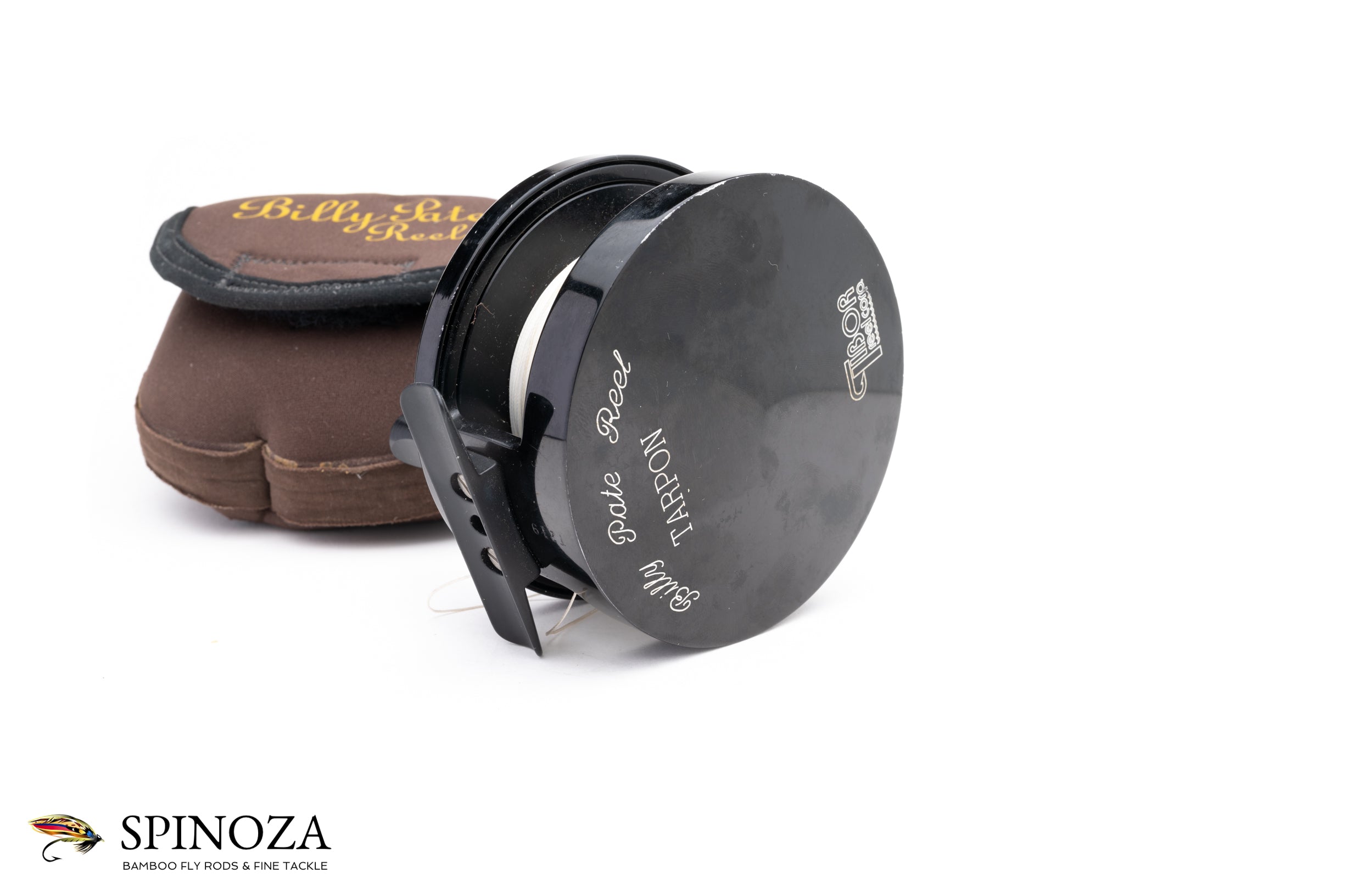 A nice Billy Pate Tarpon Anti-Reverse fly reel, 3 3/4" diameter and set up for LHW. Excellent used condition with some wear to the frame edge in a few spots but nothing major. Classic Anti-Reverse design with an all-black frame and spool. The backplate has the Billy Pate writing in script with the tarpon model noted, along with the early Tibor logo on the opposite side. Weighs 14.3 ounces on my scale which includes backing. Designed to hold a WF12 and 300 yards of backing. Comes with an original neoprene case.