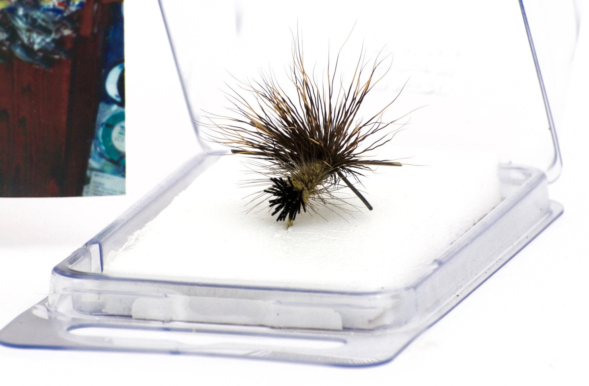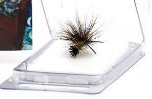 Included with fly is original box with information and a picture of Bob Jacklin in his fly shop.