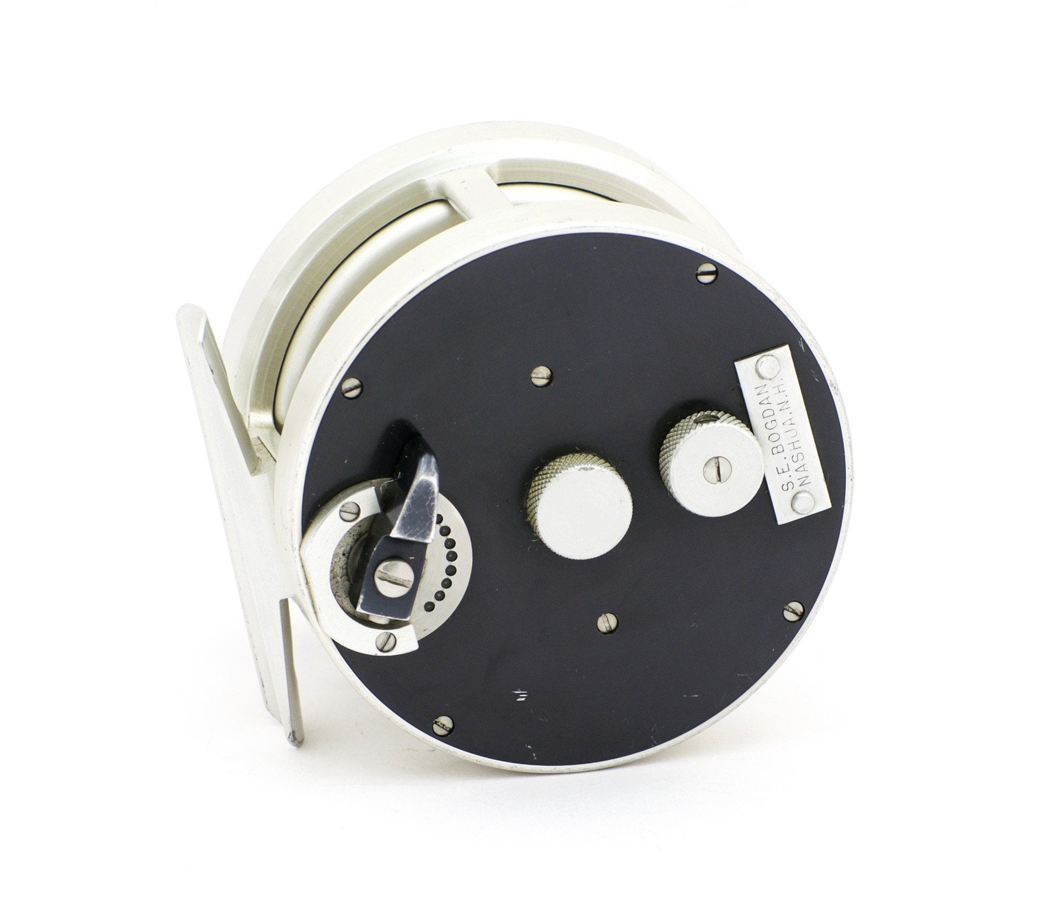 For sale here is a Bogdan Model 00 fly reel and spare spool in excellent overall condition with minor wear throughout. Original suede pouch for the reel is included. Left hand retrieve. Multiplier.