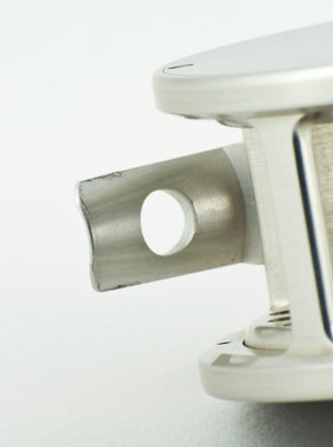 For sale here is a Bogdan Large Steelhead Model fly reel. The reel is set up for left hand retrieve but can be switched to right hand retrieve for under $100. The reel is in near mint condition with only the slightest of marks on the reel foot from attaching to the hardware on a rod. The reel appears unused otherwise. Mechanically, the fixed click drag is still as strong as it was when it left Stan's bench.