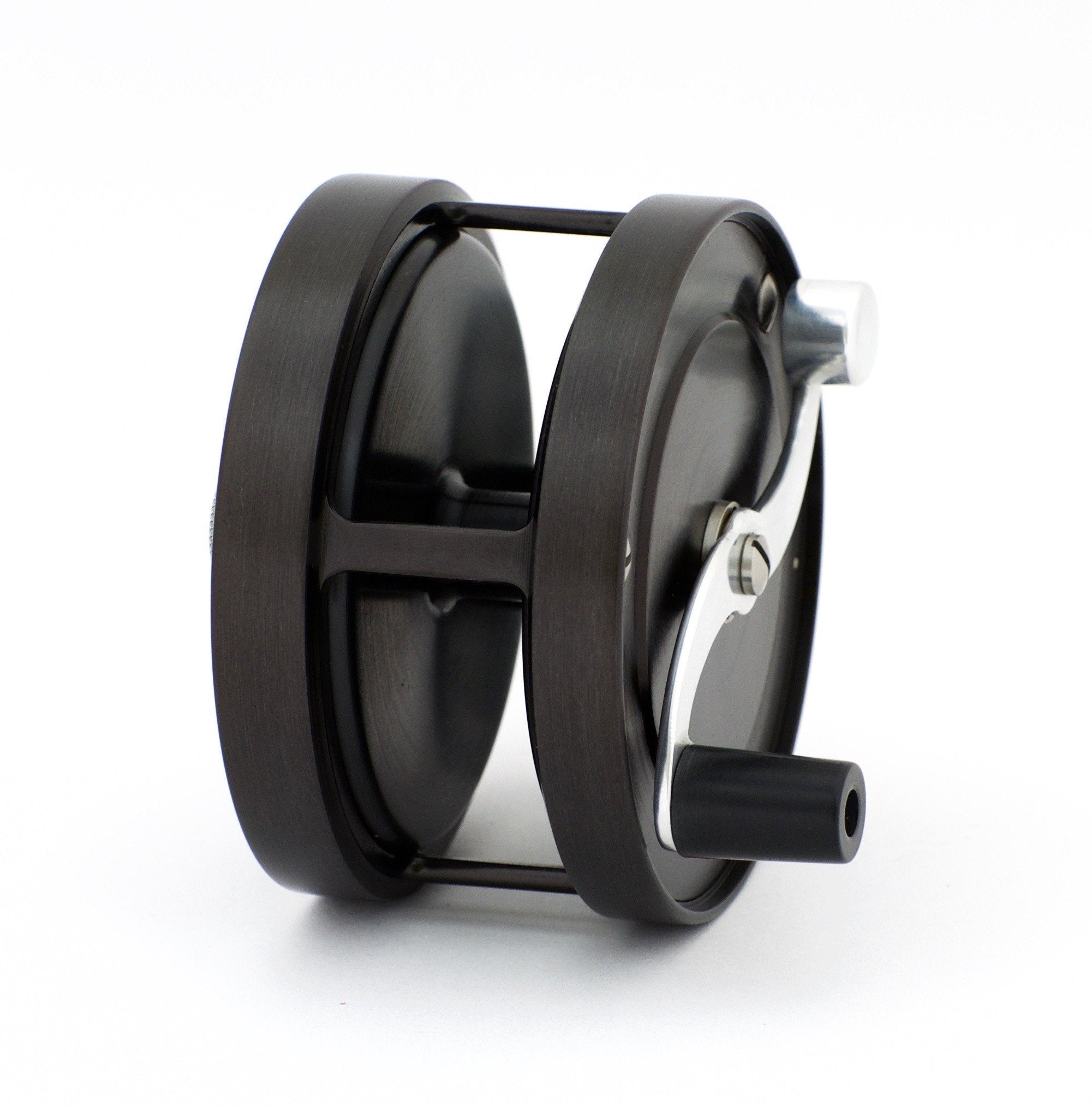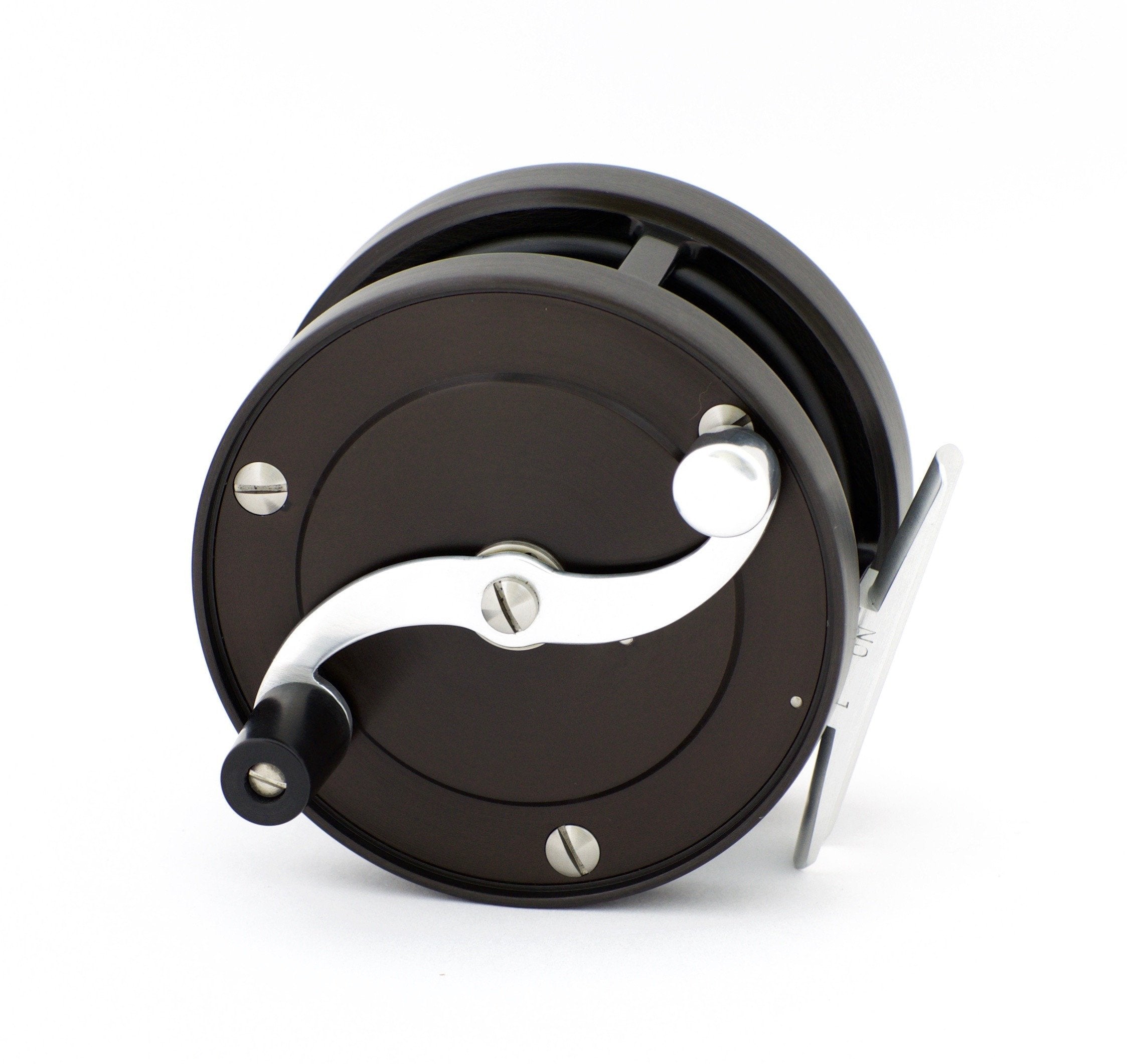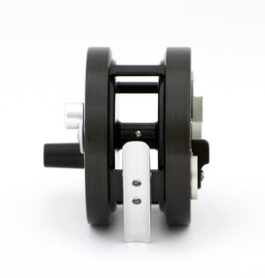 For sale here is a rarely seen all-black Bogdan Model 1 LG Salmon fly reel in left hand retrieve. Original suede case. Near mint condition.