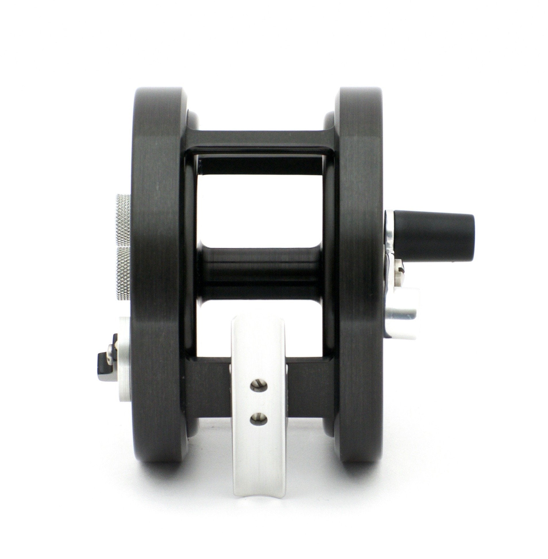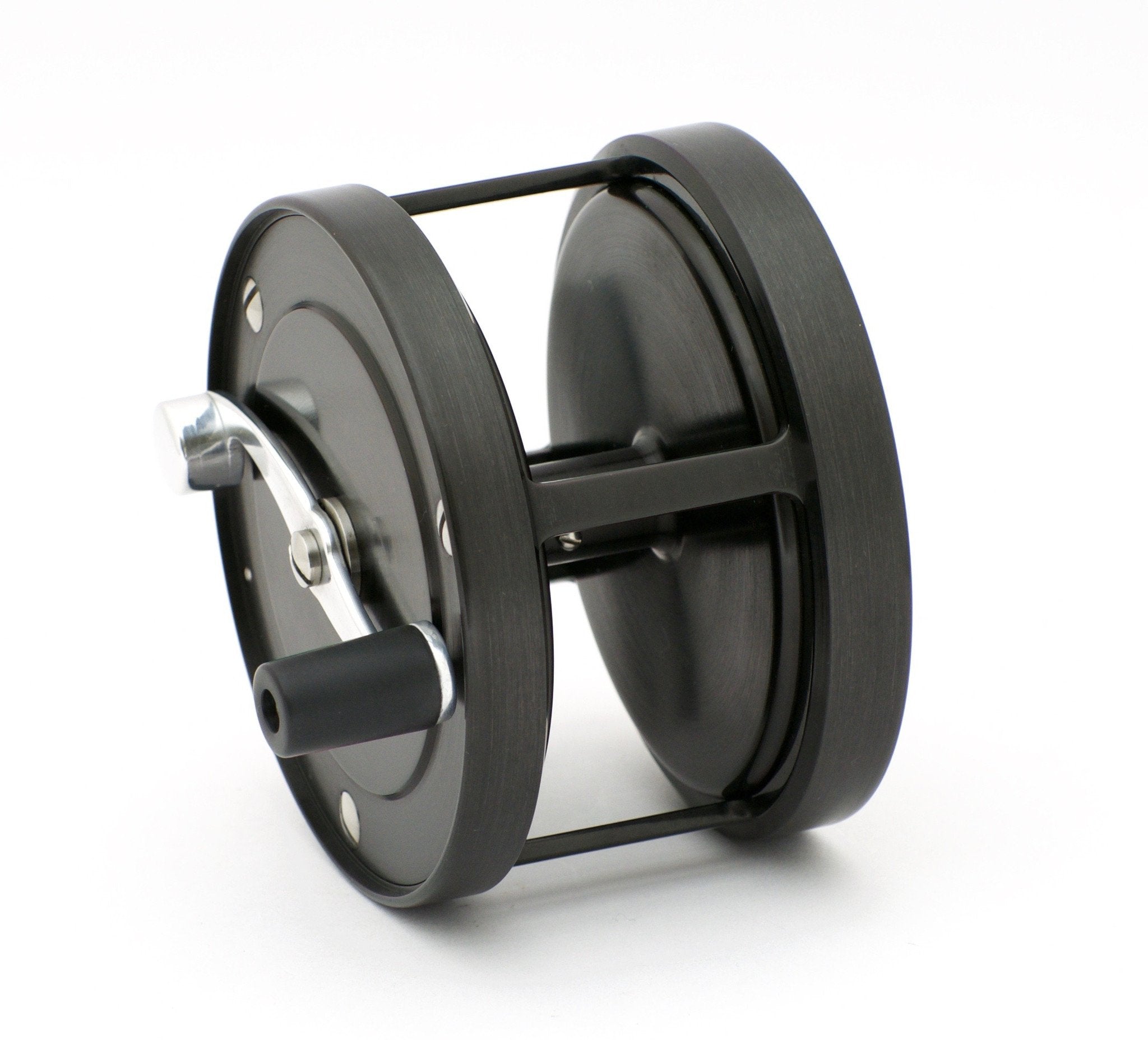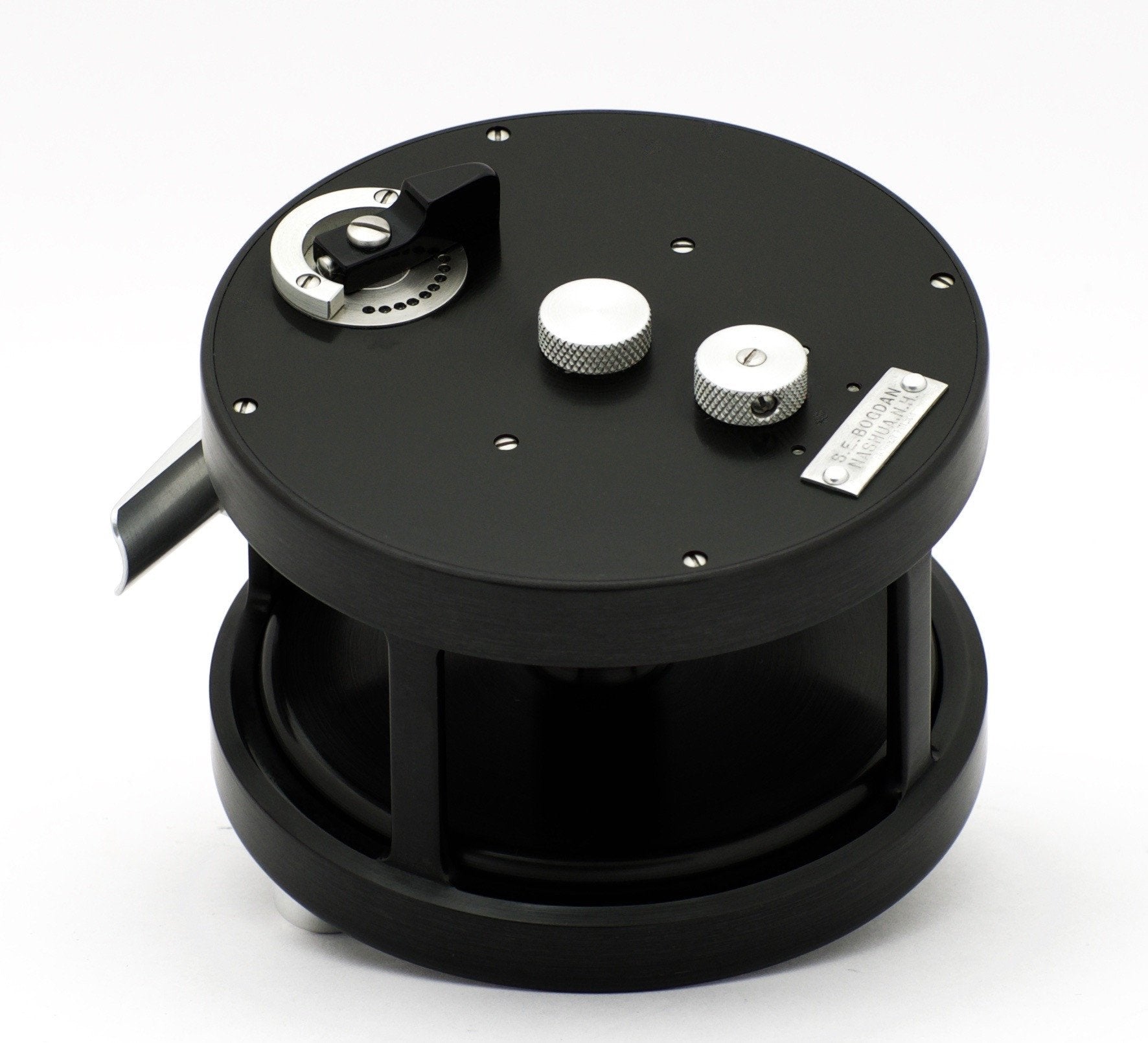 For sale here is a Model 400 Bogdan fly reel in the very scarce all-black finish. The reel is right hand retrieve and in mint condition. This is the first all-black Model 400 I've ever been privileged to offer. The reel comes housed in its original suede case and also comes with a spare spool in unused condition.