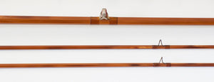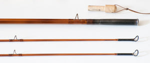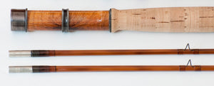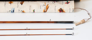 For sale here is a Payne 101 taper bamboo rod made by Harry Boyd. Excellent condition overall. Lightly flamed. The rod features a stunningspalted oak reel seat spacer with blued cap and ring. The rod weighs 4 3/8 oz.