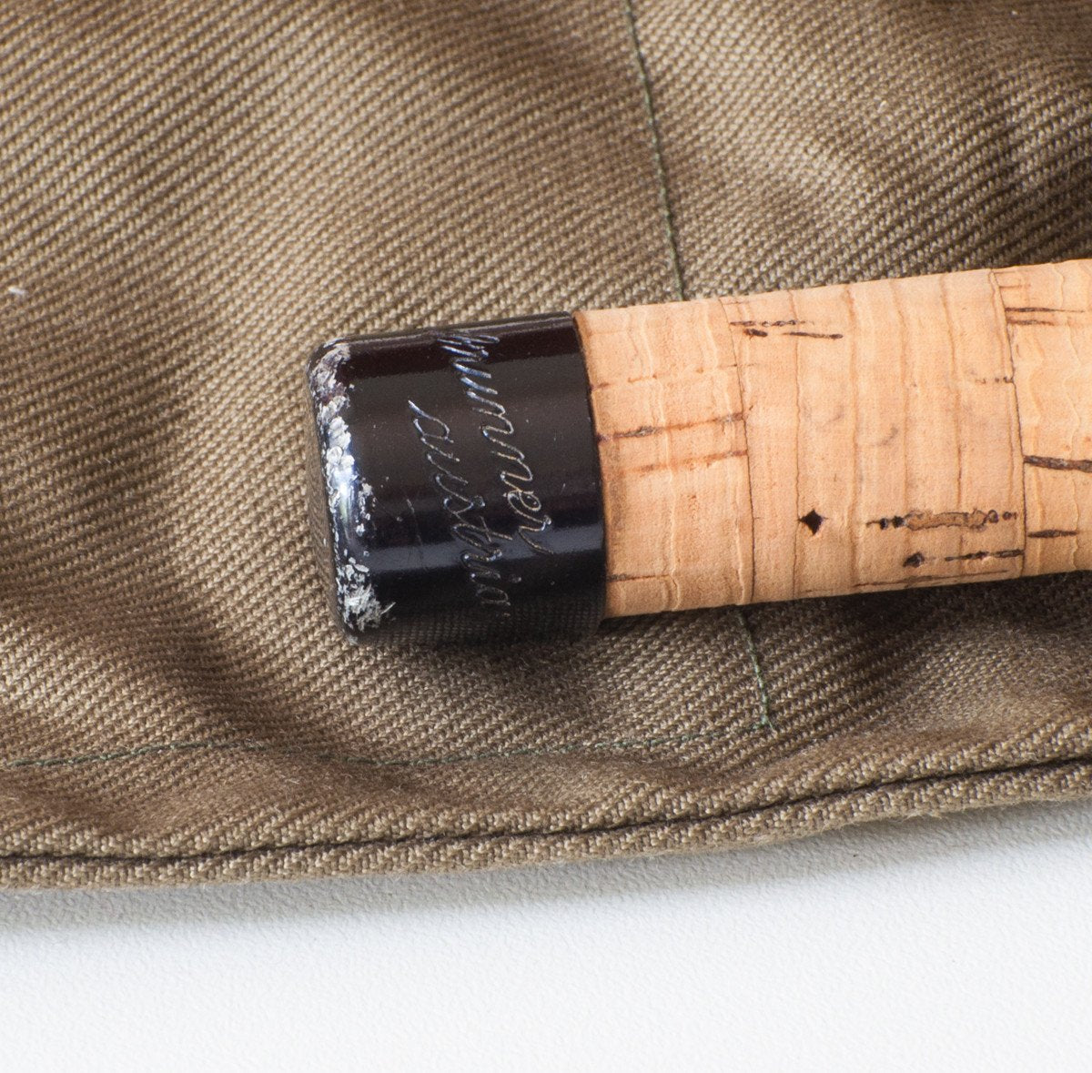 For sale here is a Walter Brunner "Type Traun Spezial" bamboo rod (this model is extremely difficult to find). 2.35 meters in length (7'8"), 2/2 for a 5 or 6 weight line. Made in 1979. Excellent plus condition. All sections are full length and straight. Black silk wraps, staggered ferrule design, fast parabolic action (not as fast as the Gebetsroither model), black anodized sliding band and cap. The rod weighs 3.9 oz. Walter Brunner's rods are much sought after and extremely hard to find on the resale market. The rod comes with its original bag and original black labeled tube with leather appointments on both ends.