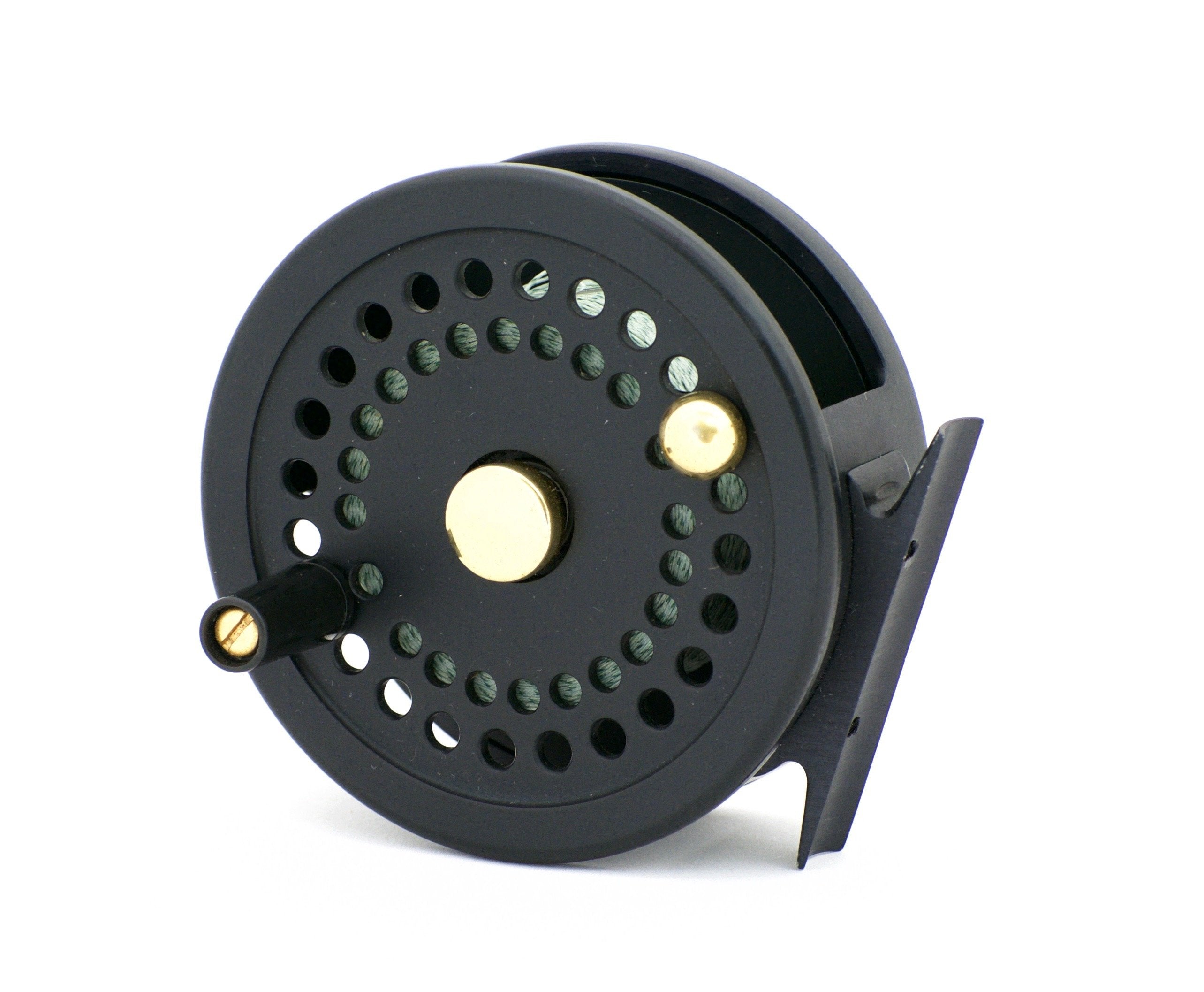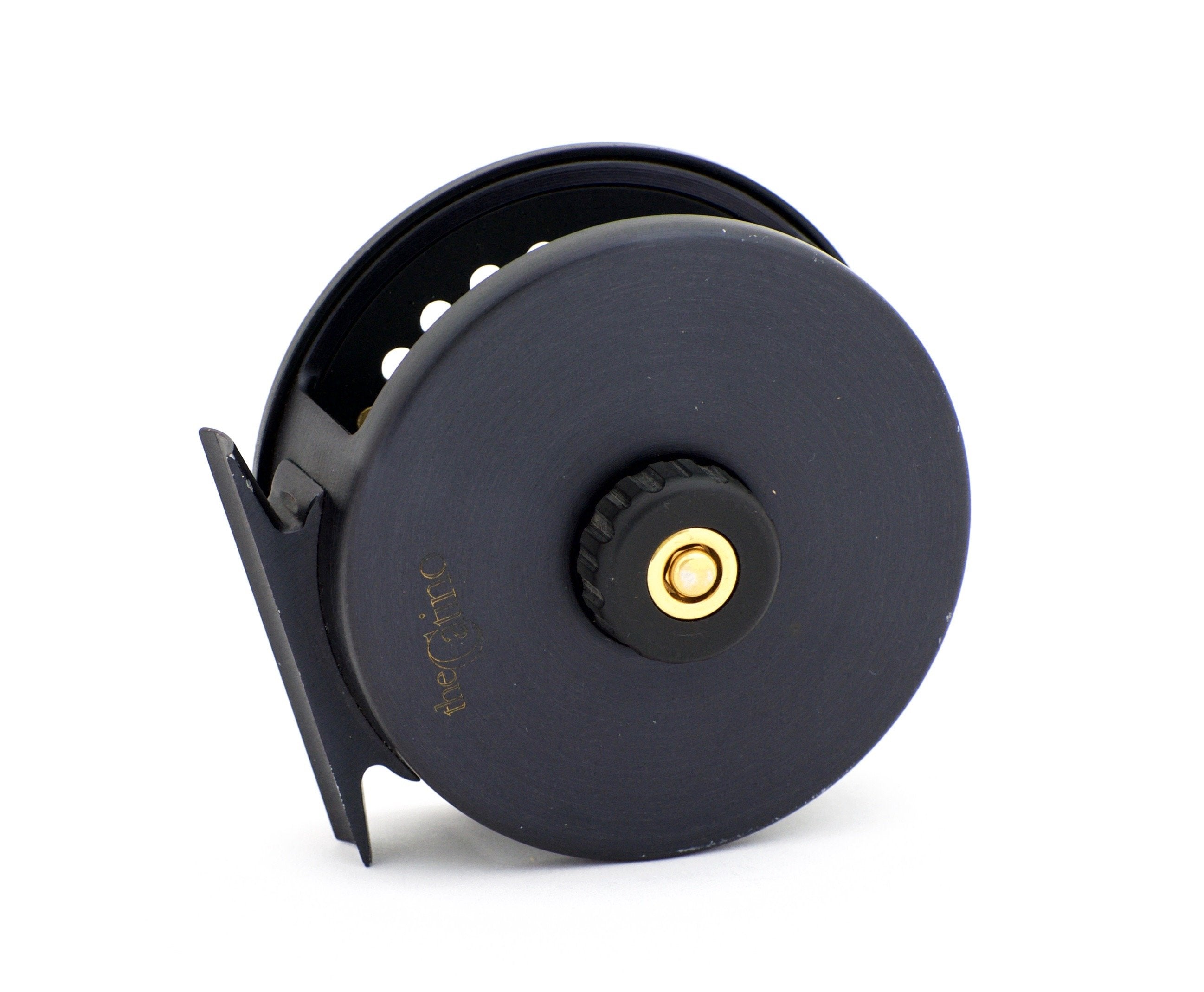 For sale here is a Frank Catino Bonefish fly reel. These reels were sold by Orvis in their 1983 and 1984 catalogs. This reel is left hand retrieve. Palmable winding plate rim. Diameter is 3 1/4 inches, the spool width is 1.2 inches. The reel weighs 6 1/4 oz and is in excellent used condition. The cork disc drag is very strong when applied. Silent both directions. Capacity is up to WF8 plus 200 yds of 20 lb. backing. This is a super-functional reel that surely will satisfy its next owner.