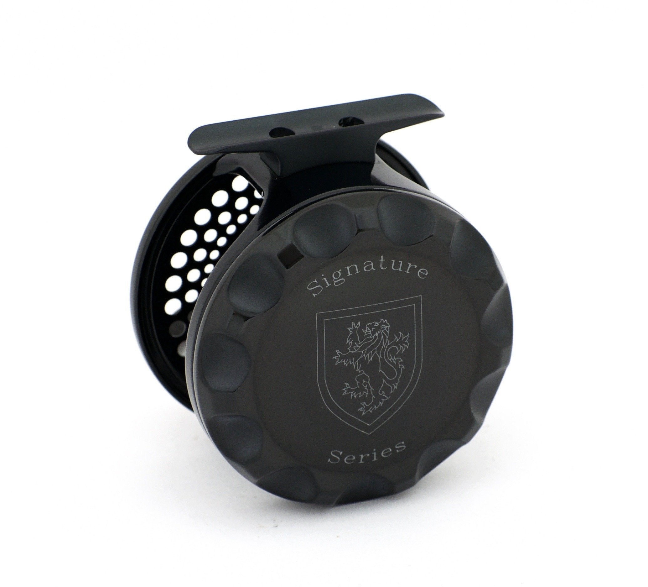 For sale here is a scarce Charlton 8400 Signature Series 1.2 fly reel in mint condition. Left hand retrieve. Designed for 6-8 wt lines. Capacity is WF8 + 180 yds. of 20# backing. Catalog weight is 7.8 oz. Comes with original blue cordura pouch.