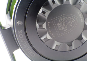 Here is a scarce opportunity to purchase an exceptional Charlton Thinn-Line (TL) fly reel, model 8500 1.2 (serial number TL9095). Left-hand retrieve! This reel was only available for a few years, early in the history of Charlton Reels from 1994-96. This series was ironically cheaper than the more well-known Signature Series with most of the savings made in the matte finish and simplified drag knob. There is one ding on the rim, otherwise the reel looks unused, including no marks on the reel foot.