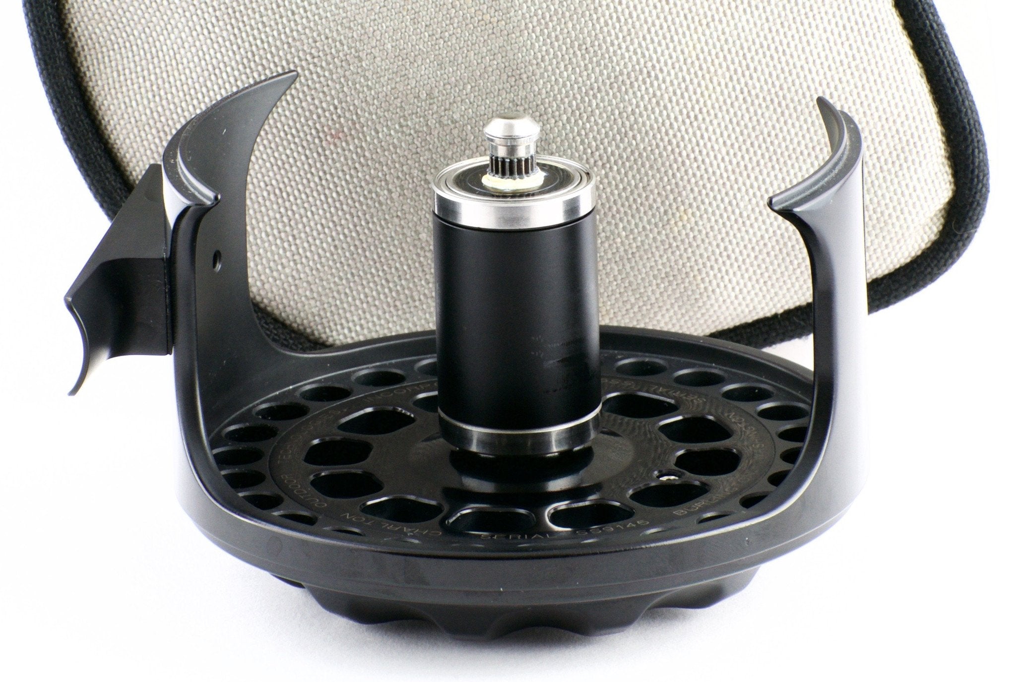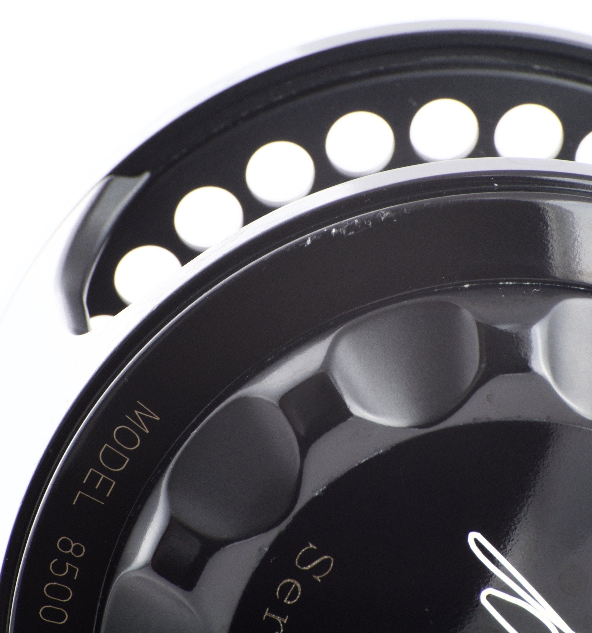 For sale here is a very scarce left-hand retrieve Charlton 8500 Signature Series 1.6 fly reel in excellent condition. Carbon fiber sealed drag. Personalized for original owner. Designed for 10-12 weight forward lines, or 30 feet of shooting head with running line plus 400 yds of 30# backing. Weight is 10.9 oz. Comes with original reel pouch.