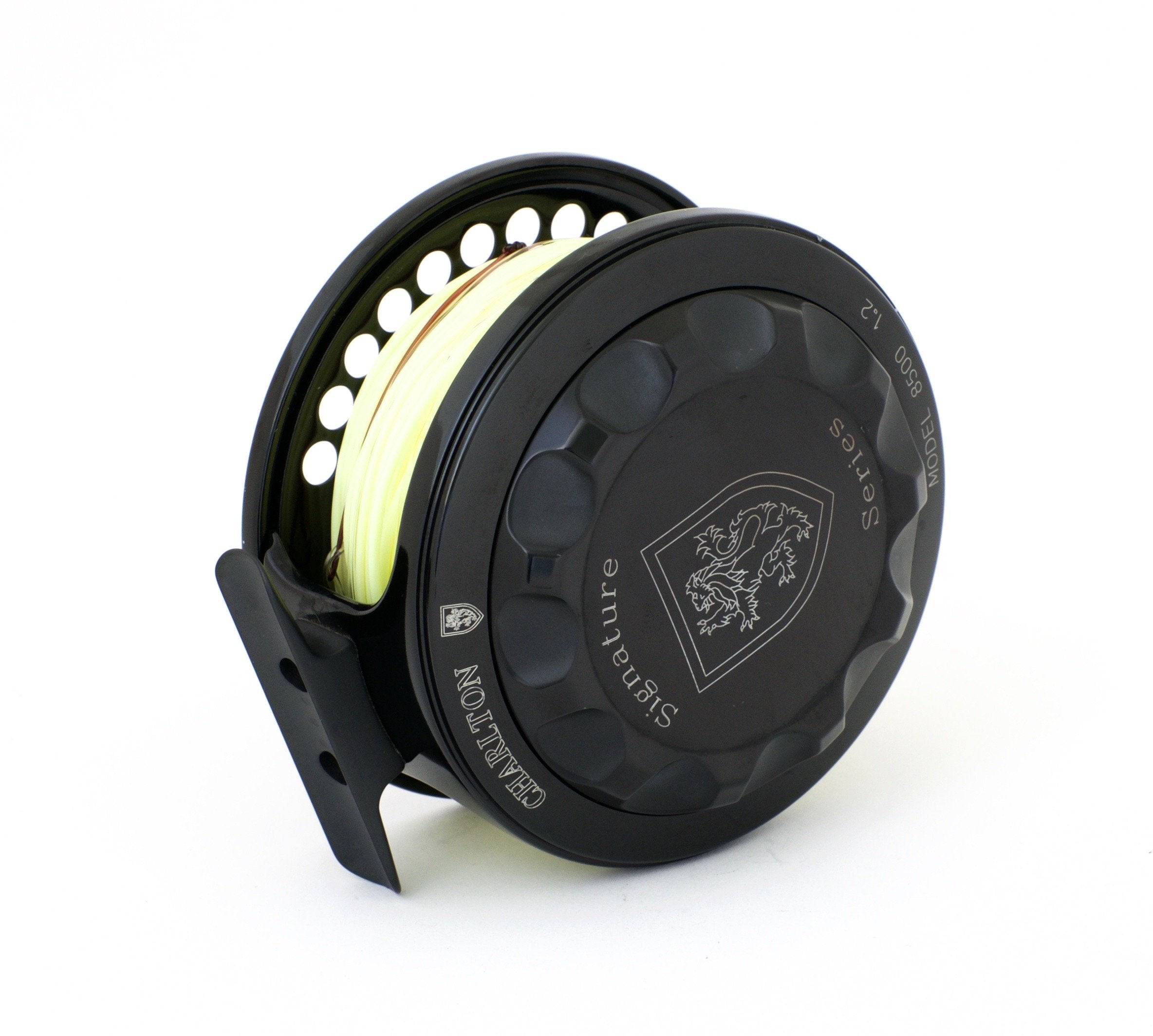 For sale here is a Charlton 8500 Signature Series 1.2 fly reel in excellent used condition. Two small dings to the frame edge and some insignificant water marks that would easily polish out. Carbon fiber sealed drag.Left hand retrieve. A classic bluewater reel that is indestructible and a match for whatever you can throw its way! Designed for 10-12 wt lines. Catalog weight is 10 oz. Comes with original cordura reel pouch and lined with backing and a Sharkskin 10wt line.