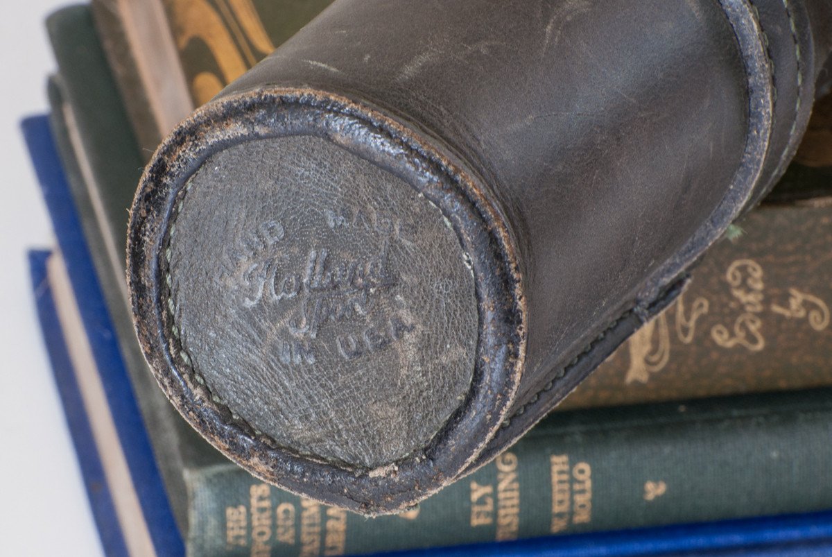 For sale here is an original Lyle Dickerson Model 861711-D bamboo rod. 8'6, 3/2 for a 6 weight line. Excellent overall condition. All sections are full-length. No prior repairs are evident. The rod weighs 4 3/4 oz. Cigar grip with down-locking hardware and standard walnut insert. Brown silk thread wraps with black edging. Blued nickel silver ferrules and guides. Loop to loop hook-keeper. Pre-WWII agate stripping guide. The ferrule fit is excellent. The grip is in fine condition. The varnish shows evidence of prior softening but remains in very good condition and not soft. The action is medium fast. The rod comes with its original bag and a very nice Holland leather tube.