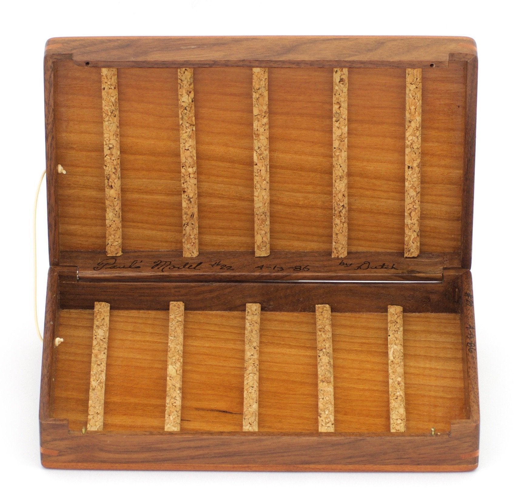 Dave ("Dutch") Schultz has been crafting these boxes for over 30 years. He spends his summer months on the banks of the Henry's Fork and in winter months he calls Steamboat Springs, CO home. Do yourself a favor and grab a box while you can. Yes, these boxes sell for less than a Hardy Neroda box!