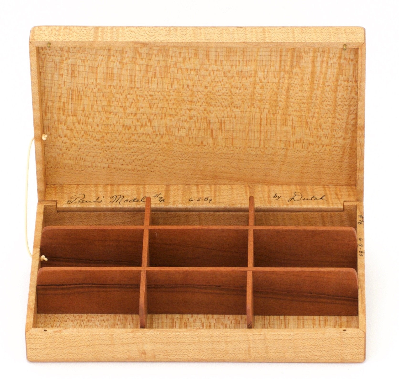 Dave ("Dutch") Schultz has been crafting these boxes for over 30 years. He spends his summer months on the banks of the Henry's Fork and in winter months he calls Steamboat Springs, CO home. Do yourself a favor and grab a box while you can. Yes, these boxes sell for less than a Hardy Neroda box!