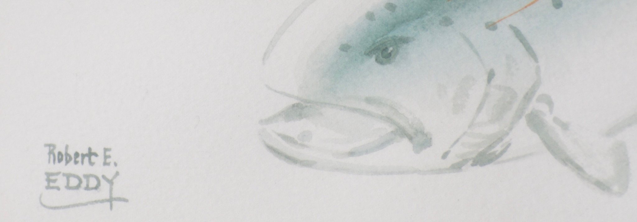 As an avid fly fisherman, his paintings of rivers and the fish they were famous for, became a focus for many years and were presented at flyfishing conclaves, one being in Yellowstone in 1981 where Jimmy and Rosalyn Carter acquired one of his paintings. Eddy was very well known in Santa Cruz, California, his final place of residence.