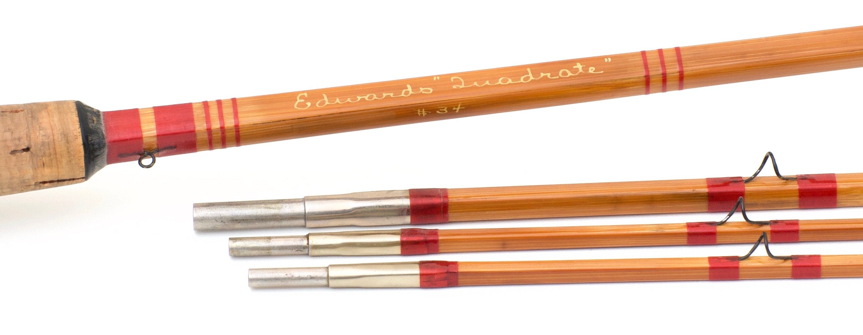 For sale here is an Edwards Quadrate Model #34 bamboo rod -- 8' 3/2 5-6wt. The rod is in excellent condition showing only light wear.