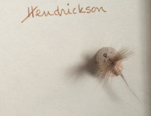 For sale here is another very scarce collection of legendary Catskill flies - twelve Elsie Darbee tied classic Catskill pattern flies in a shadowbox frame measuring 9x14. Each fly has its name written next to it in a beautiful script, probably by Elsie.