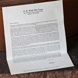For sale here are three wonderful Gary Howells ephemera items. First, an 8x11 brochure featuring photos of Gary Howells rods, showing the Payne-style grip and two reel seat options. Also included are two typed letters on Howells' letterhead, one details rod models, prices and a signed note in 1990 regarding deliveries being quoted for delivery in late 1990, early 1991. The other more interesting piece of ephemera is an unsigned letter explaining his history as a rodmaker, his rodmaking philosophy and many other details such as his current delivery time of 14 months. "My not having an expensive catalog ready to shower eager fly fishermen with is best explained by giving my credentials as a rodmaker".....he continues to explain. A wonderful piece of history on Howell's letterhead indeed!