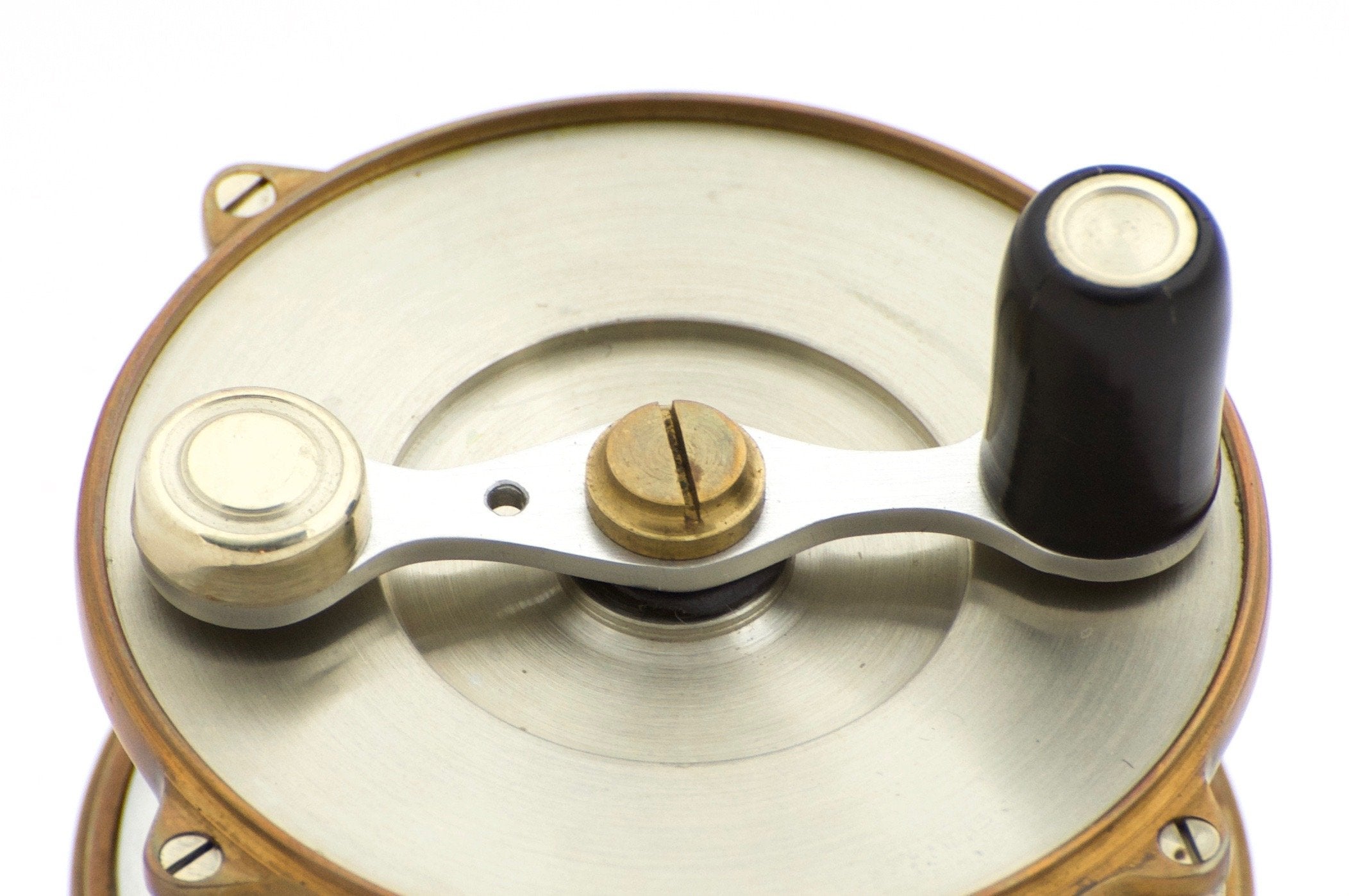 The reel was made in 2005 and remains in near new condition. Only very minuscules handling marks and slight tarnish exists commiserate with the age of the metals.