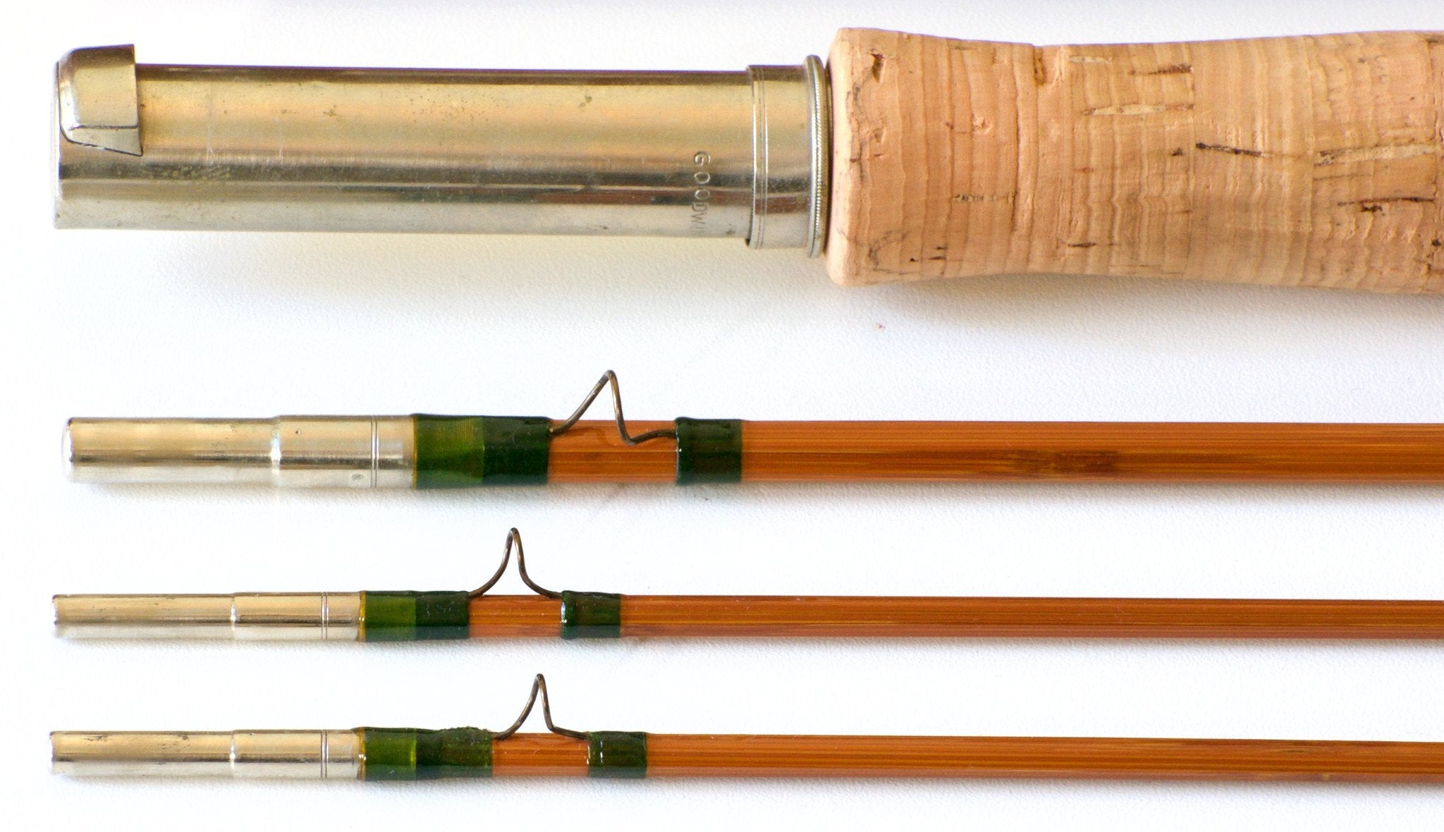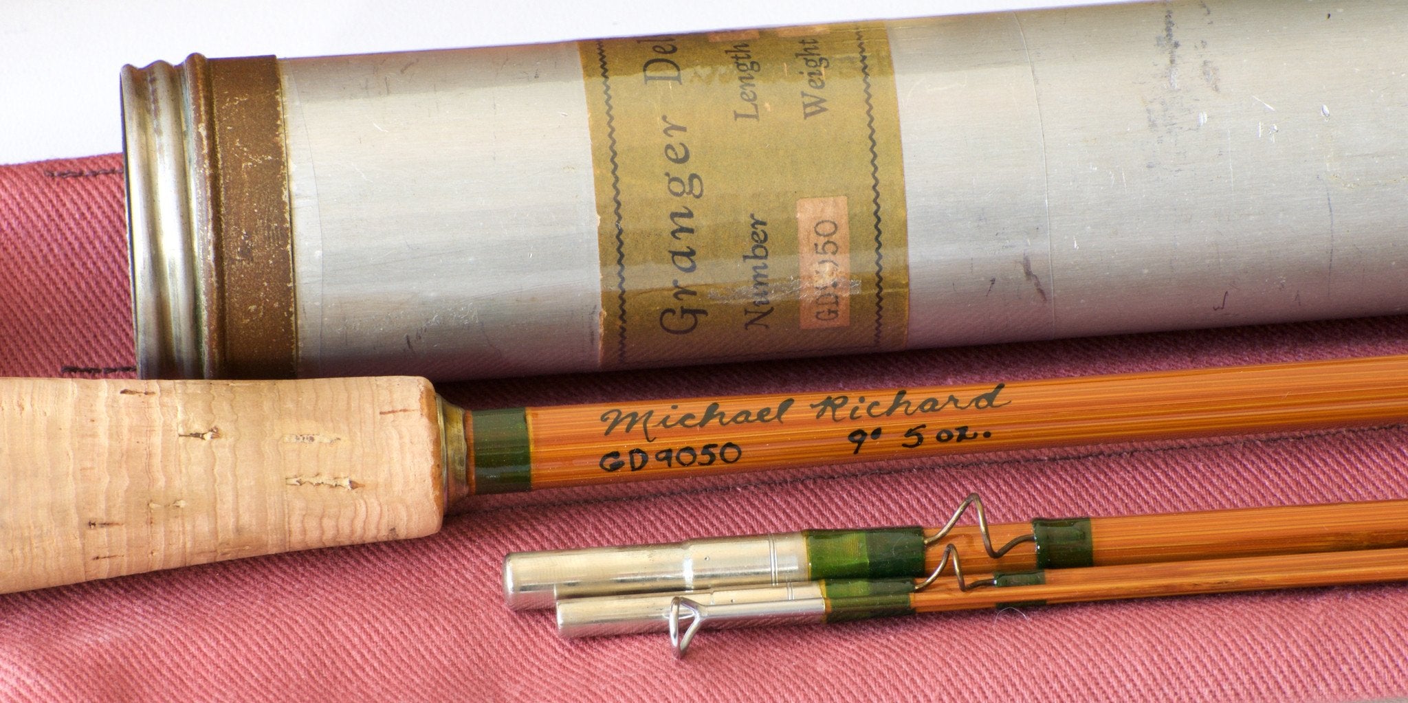 For sale here is a refinished Goodwin Granger Deluxe Model 9050 - 9' 3/2 for a 5 or 6 weight line. Excellent condition. Non-conforming green silks but a very well done refinish. All sections are full length with no repairs. Original bag and labeled tube.