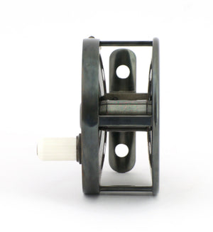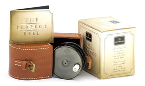 In 1997-1998 Hardy Bros. made 1000 of these 3" all-brass Perfect replicas of their 1890's reel. Right hand retrieve only. Solid heavy brass construction, turks head tension adjustment screw, three logos including rod-in-hand.