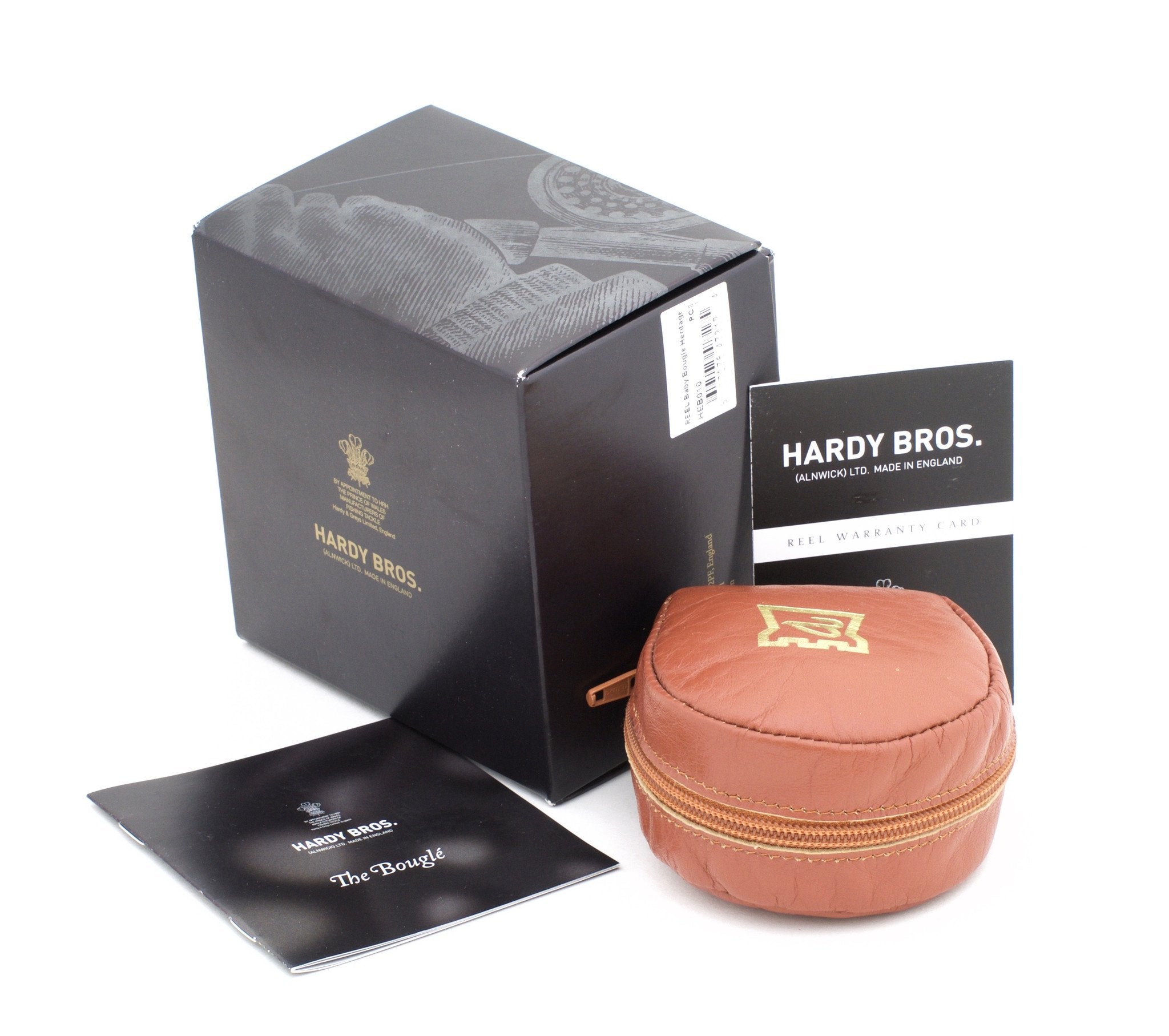 For sale here is a recent Hardy Baby Bougle Lightweight fly reel in near mint+ condition. Made in England. Right or left hand retrieve. Official capacity is DT2+25. Comes with original Hardy box, leather reel case, and paperwork.