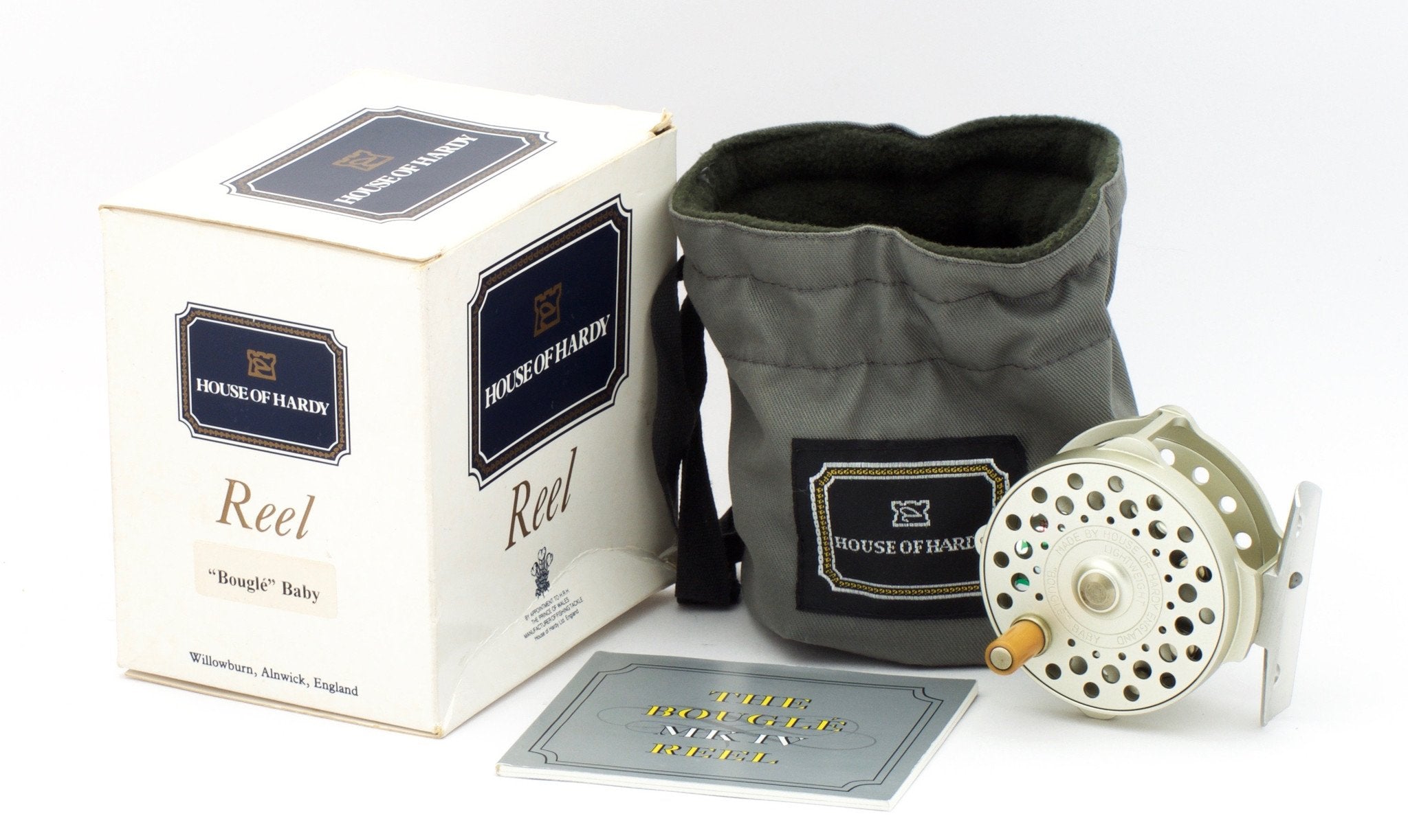 For sale here is a Hardy MKIV Baby Bougle Lightweight fly reel in mint, unused condition. Right or left hand retrieve. Made in Alnwick, England. Made for 2/3/4 weight fly lines.