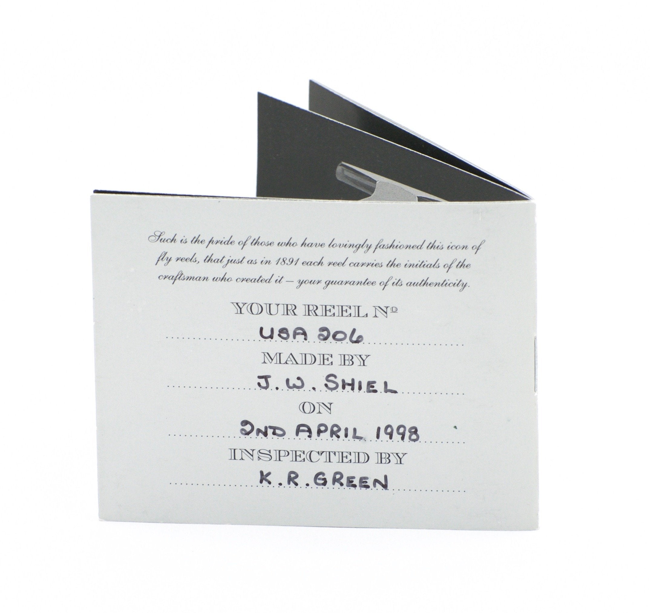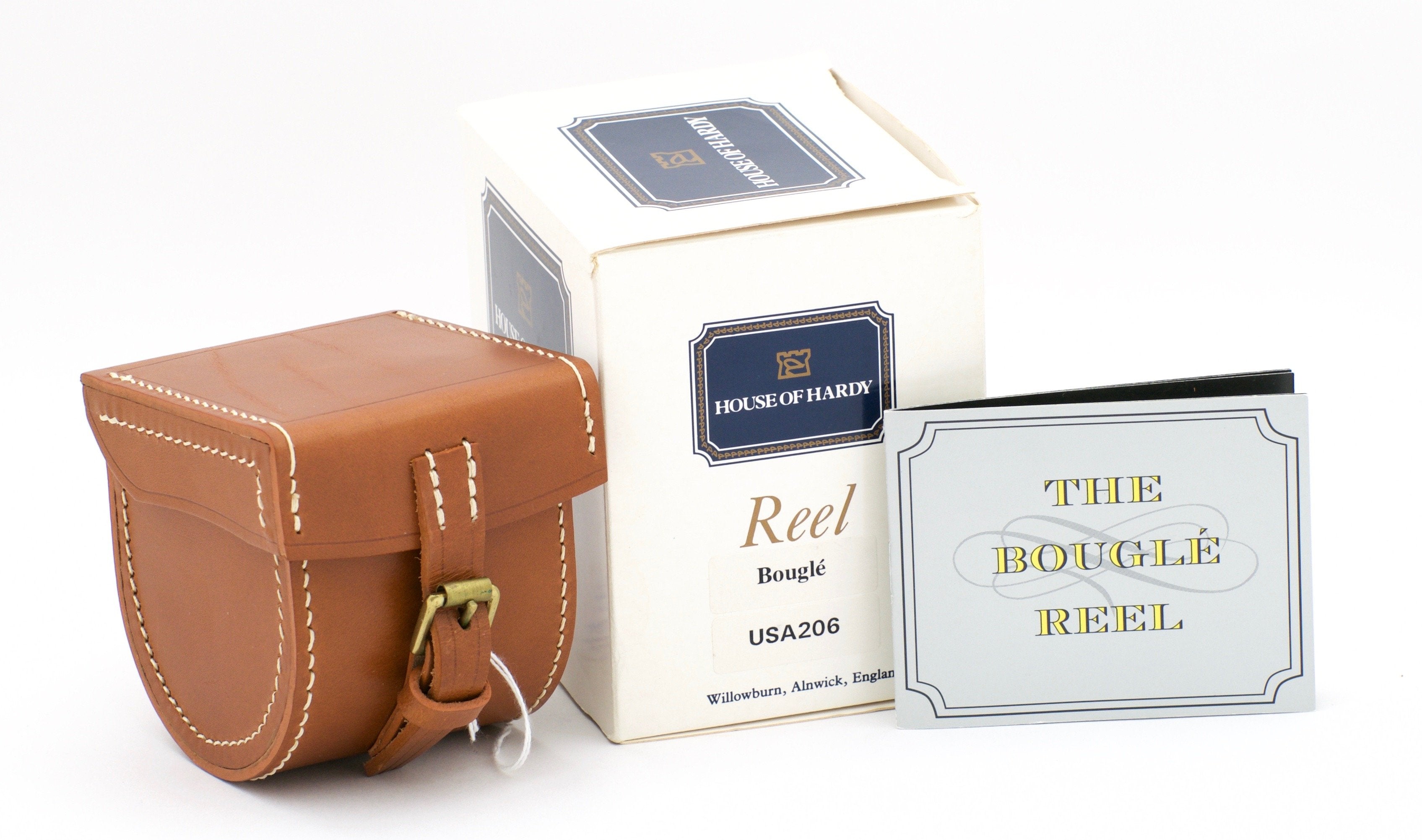 For sale here is a Hardy Bougle Limited Edition fly reel commemorating the 1903 Hardy Bougle model. Mint condition, never lined. These reels were all made in England. This particular reel was made by J.W. Shiel of Hardy Bros. as can be seen by his initials inside. This is serial #206. Comes with original box, block leather case, and paperwork.