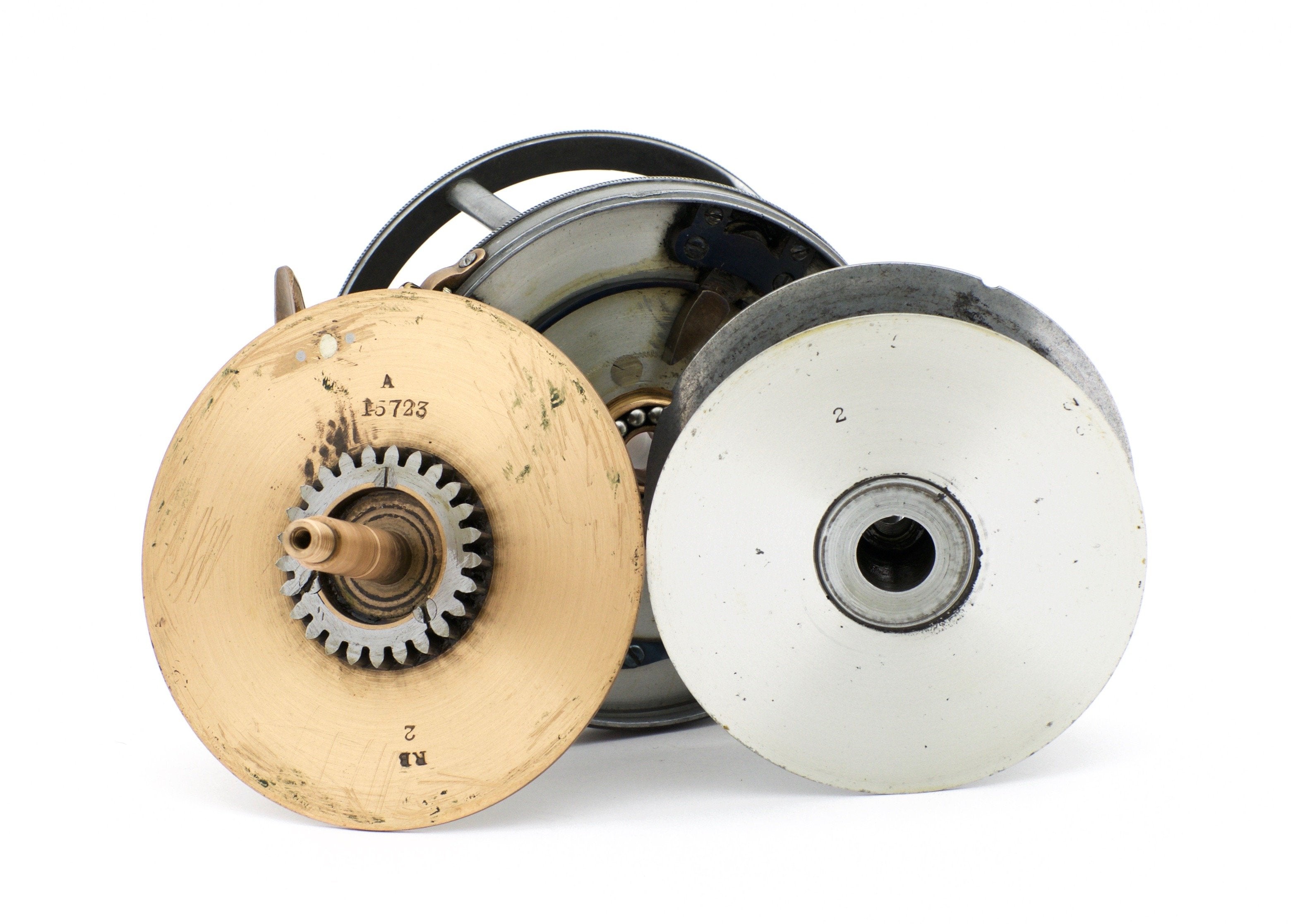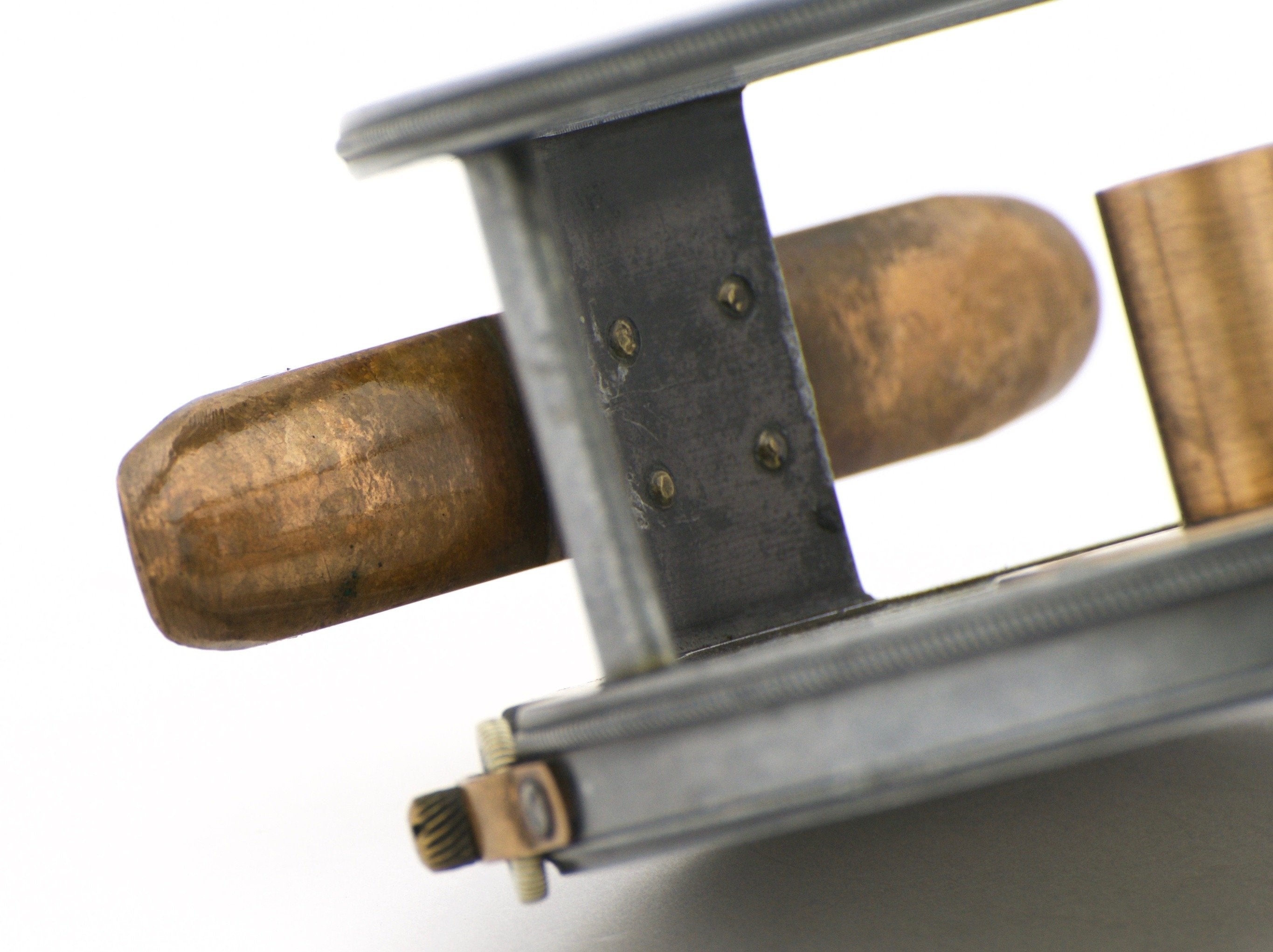 For sale here is a scarce brass face Hardy Perfect wide drum fly reel - 4" diameter with 1905 check. Excellent condition. The ivory handle spins freely. Stamped "2" throughout. Nice condition mechanically with no overly-objectionable wobble or spool/spindle play. No cosmetic issues to speak of other than a filed/shaped foot on both ends. No cracks, dings, or chips. The reel weighs 15 3/4 oz. The reel foot measures 3 1/2". Get this bad boy back on the river!