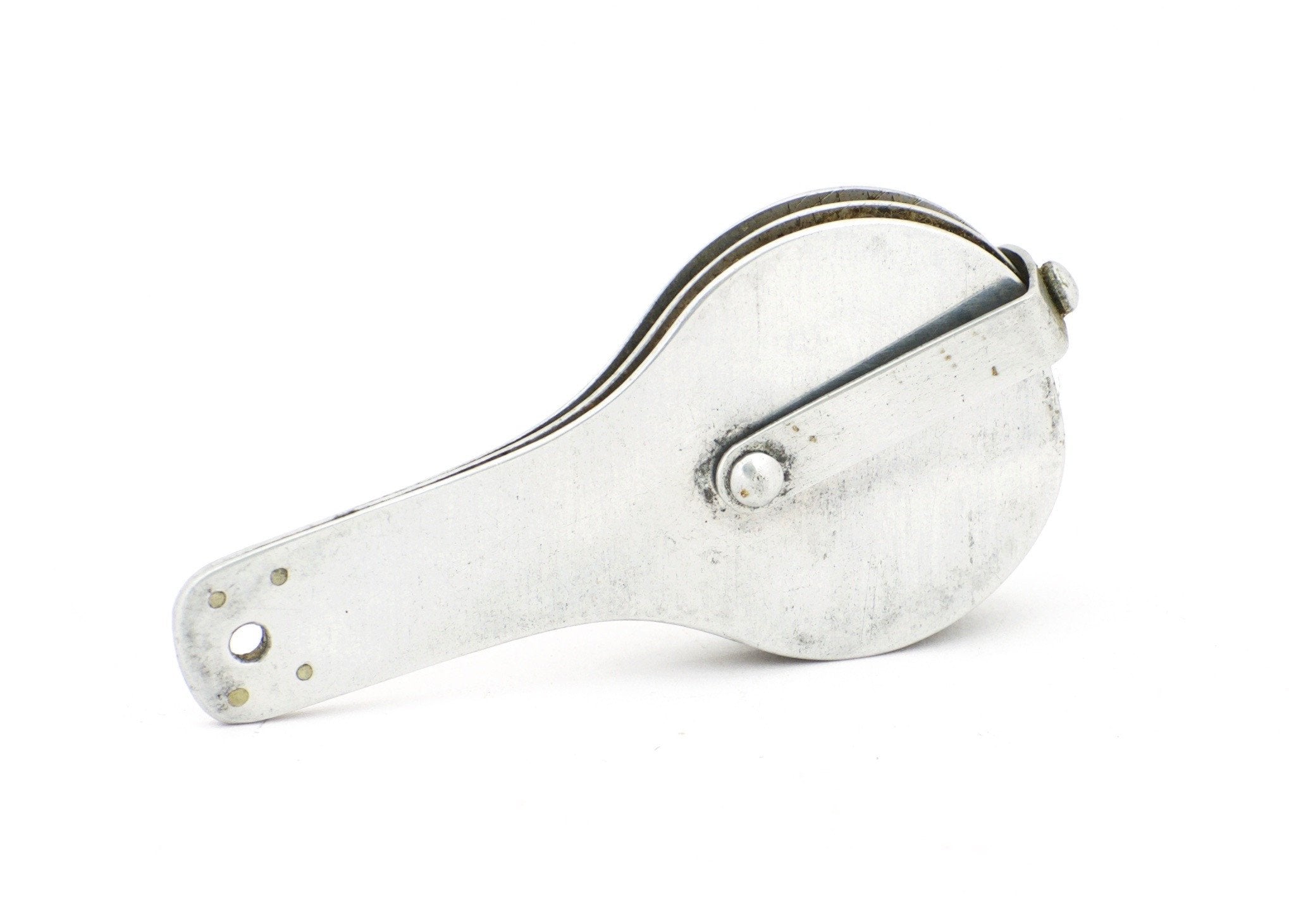For sale here is a Hardy Bros. “Drifly Dresser”. One of the pads remains and is split in half, one half being loose. Originally these tools had amadou pads on one side for drying flies and felt pads on the other side for oiling flies. Circa 1937.