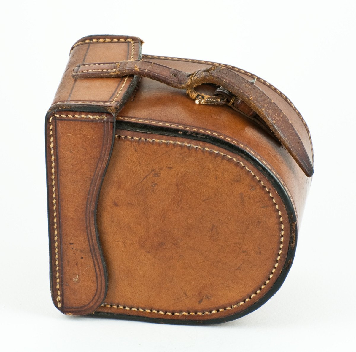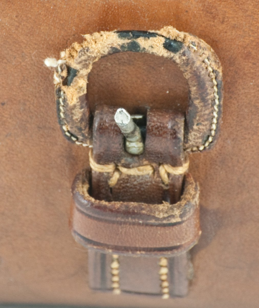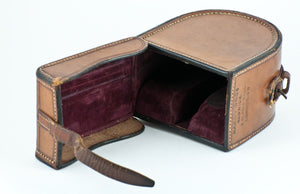 For sale here is an extremely scarce contracted model Hardy Brass Face Perfect fly reel with early check and open ball race! Made in 1899-1900. 3 1/8" diameter. All three logos on the winding plate. The patina of this brass face as well as the logo clarity are simply stunning! Ivory handle set in knurled brass fluted cup. Winding plate has the oiling hole in the embossed centre. Brass strap over tension regulator. Triple pillared cage. Four cusps to spool. Two rows of perforations around spool, outer row wider than inner row. Cosmetically and functionally the reel is in original and stellar condition. Nice and tight spool/spindle fit. Full length original foot attached with five rivets. Ivory handle spins freely. The tensioner works perfectly. Matching "3" stamps on each part. All ball bearings are accounted for. The reel also comes with its original D-block leather case with "61 Pall Mall" address in fine condition as well.